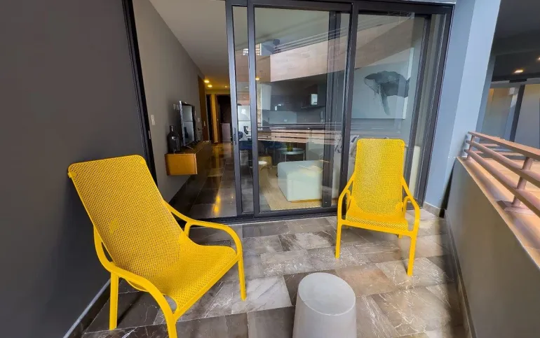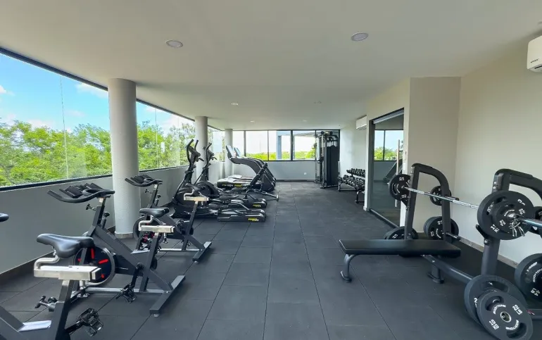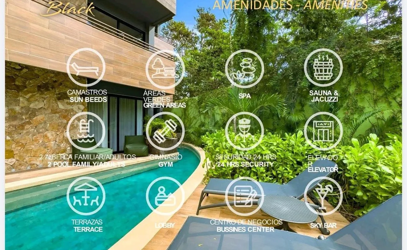 Cuenta con 2 recámaras, 2 baños, balcón, 1 cajón de estacionamiento y rooftop privado con jacuzzi, ideal para disfrutar la esencia del Caribe.