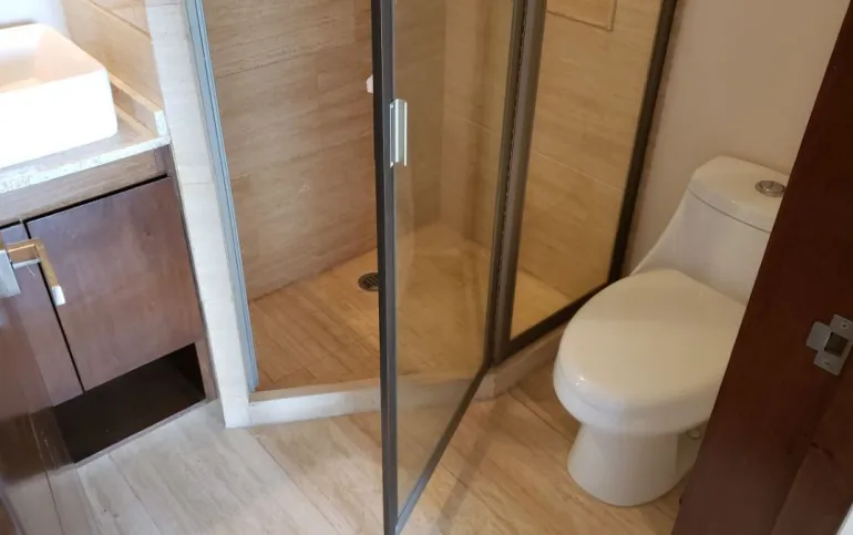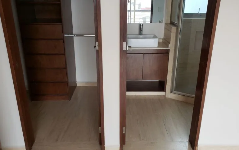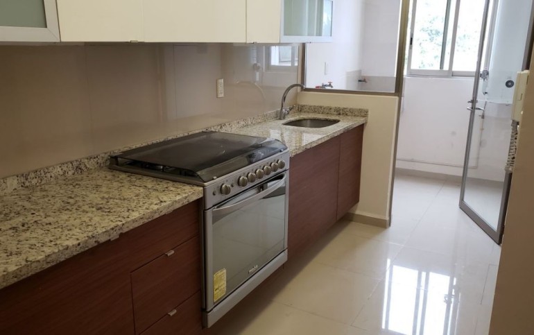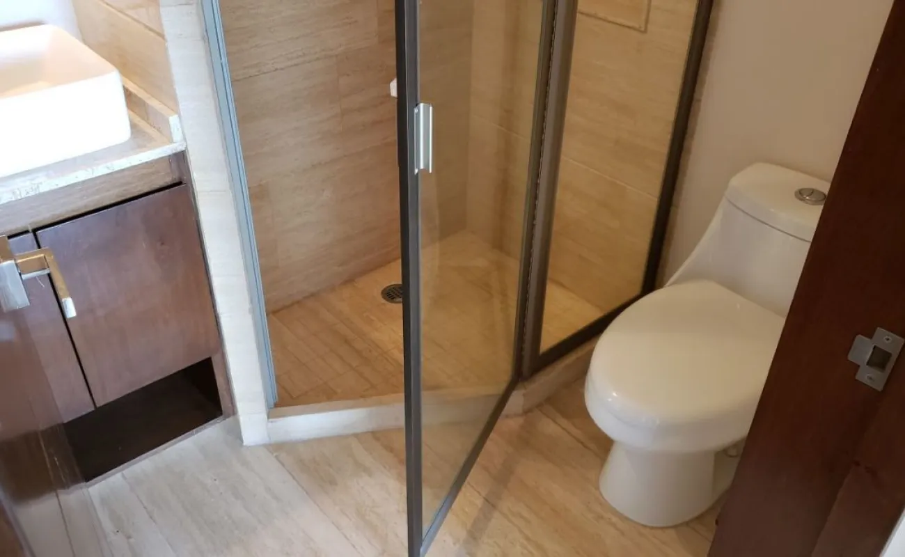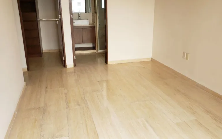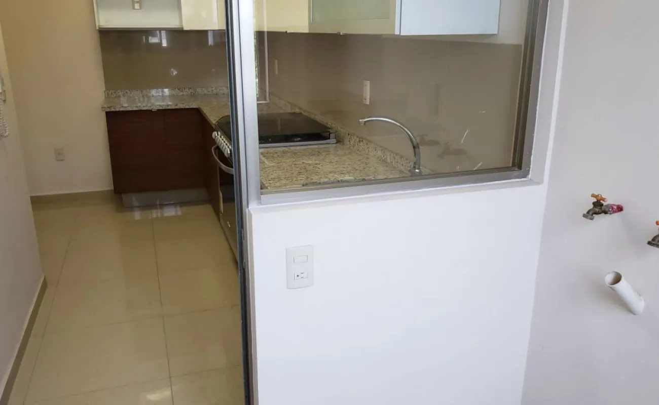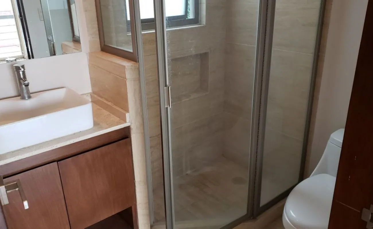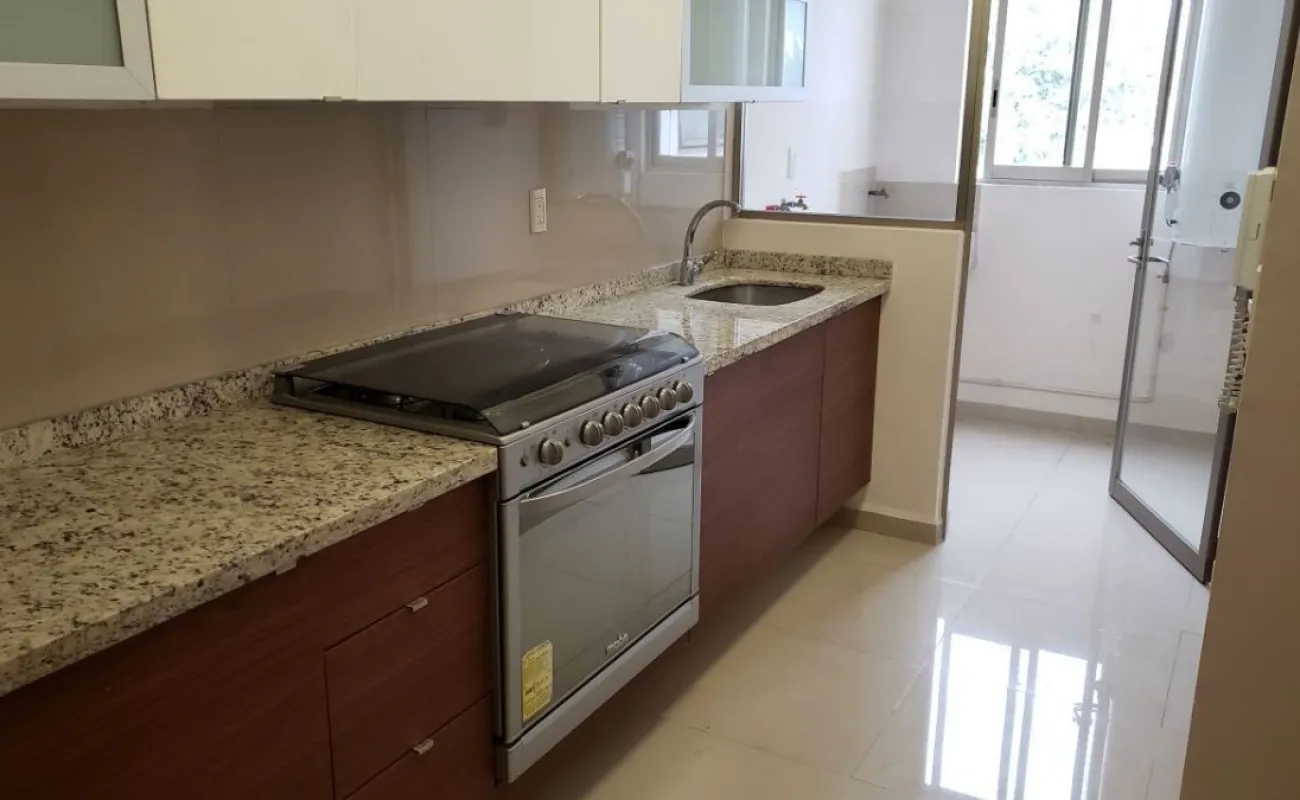 Estancia sala-comedor, generosa iluminación natural, cocina integral con cubierta de granito, cuarto de lavado integrado, recámara principal con baño vestidor y baño con cancel, recámara junior con closet, baño para recámara junior y para visitas, baños con cancel de vidrio templado, piso de mármol travertino, en condominio de sólo veintitrés departamentos, con elevador, roof garden común con asador y tarja, garaje con puerta eléctrica y caseta de vigilancia.