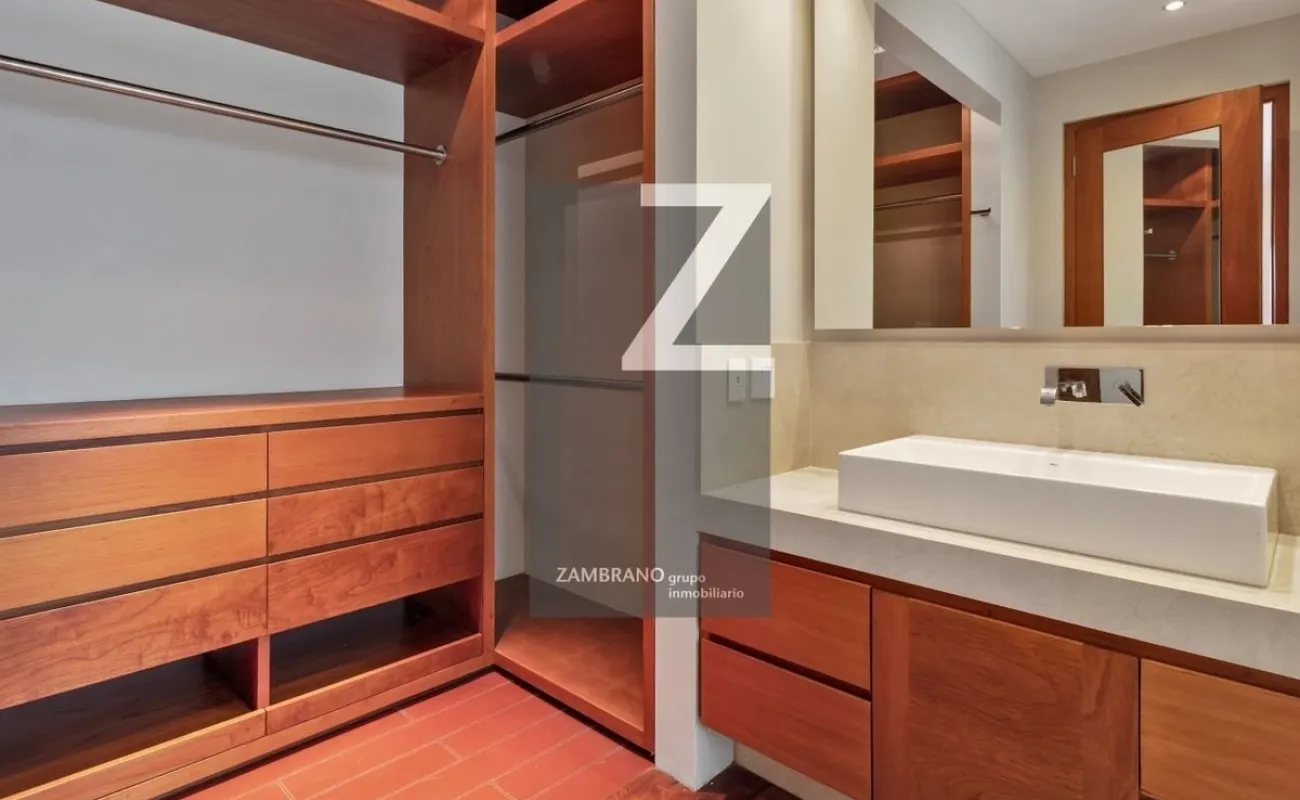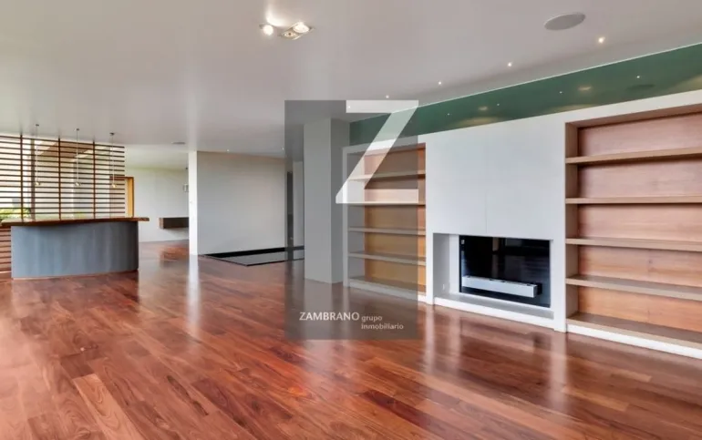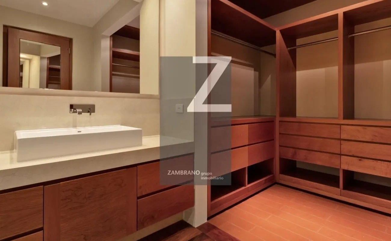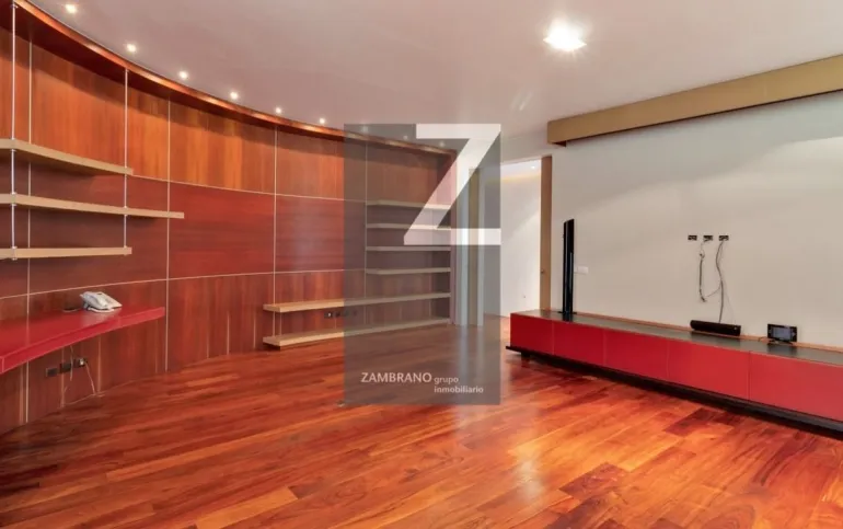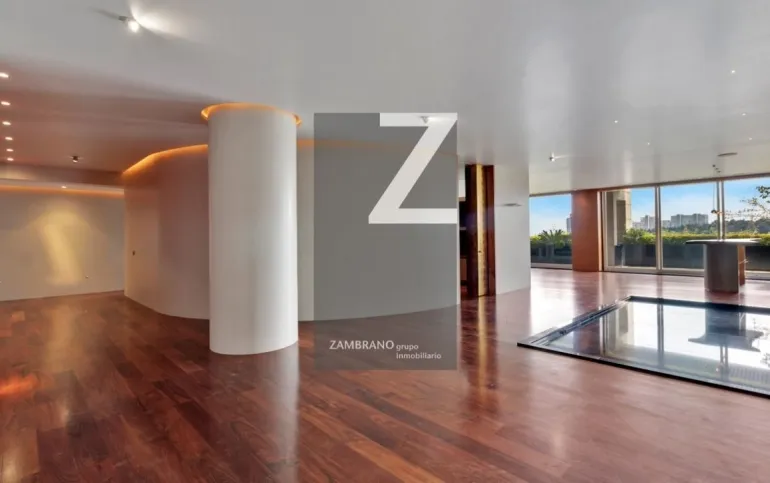 El departamento tiene 520m2, cuenta con tres recamaras todas con baño y closet - vestidor,amplios espacios para sala comedor,bar y cuarto de televisión.