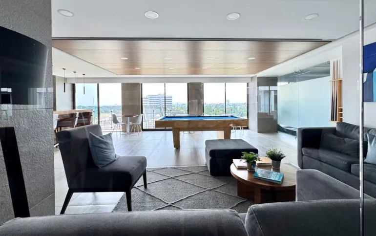 Departamento para estrenar en Skypark – All in One & Eco Friendly Estrena este departamento súper iluminado, con balcón a todo lo largo y acabados de primera calidad, dentro de un desarrollo único que combina comodidad, tecnología y sustentabilidad. Características del departamento: • 67 m² habitables + 10 m² de balcón • Acceso automatizado (tarjeta y huella digital) • Recámara principal con baño integrado • Recámara secundaria con baño exterior (también para visitas) • Sala-comedor con acceso directo al balcón • Google Home (domótica para control de luces y persianas) • Cocina integral abierta y área de lavado • 2 estacionamientos con cargadores para autos eléctricos e híbridos Amenidades del desarrollo: • Vigilancia 24/7 • Elevadores • Áreas interiores y exteriores: • Asadores, hamacas, jacuzzi, sky bar, huerto orgánico, skylounge • Área de mascotas, juegos infantiles, jardín zen • Ludoteca, business center, coffee break, coworking, terraza, lounge • Sala de cine, sports bar y taller-aula • Área comercial en planta baja