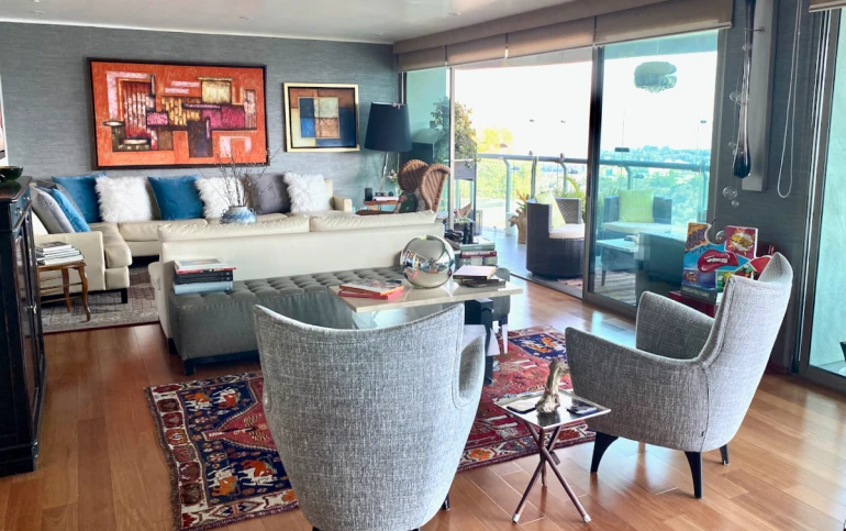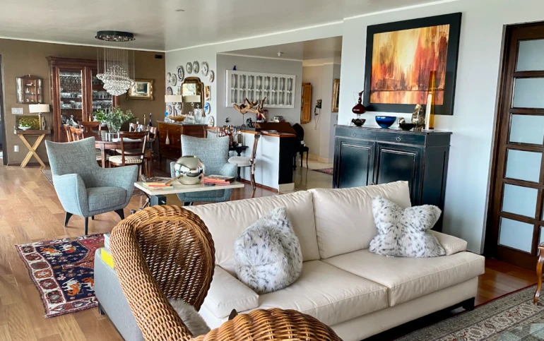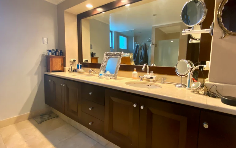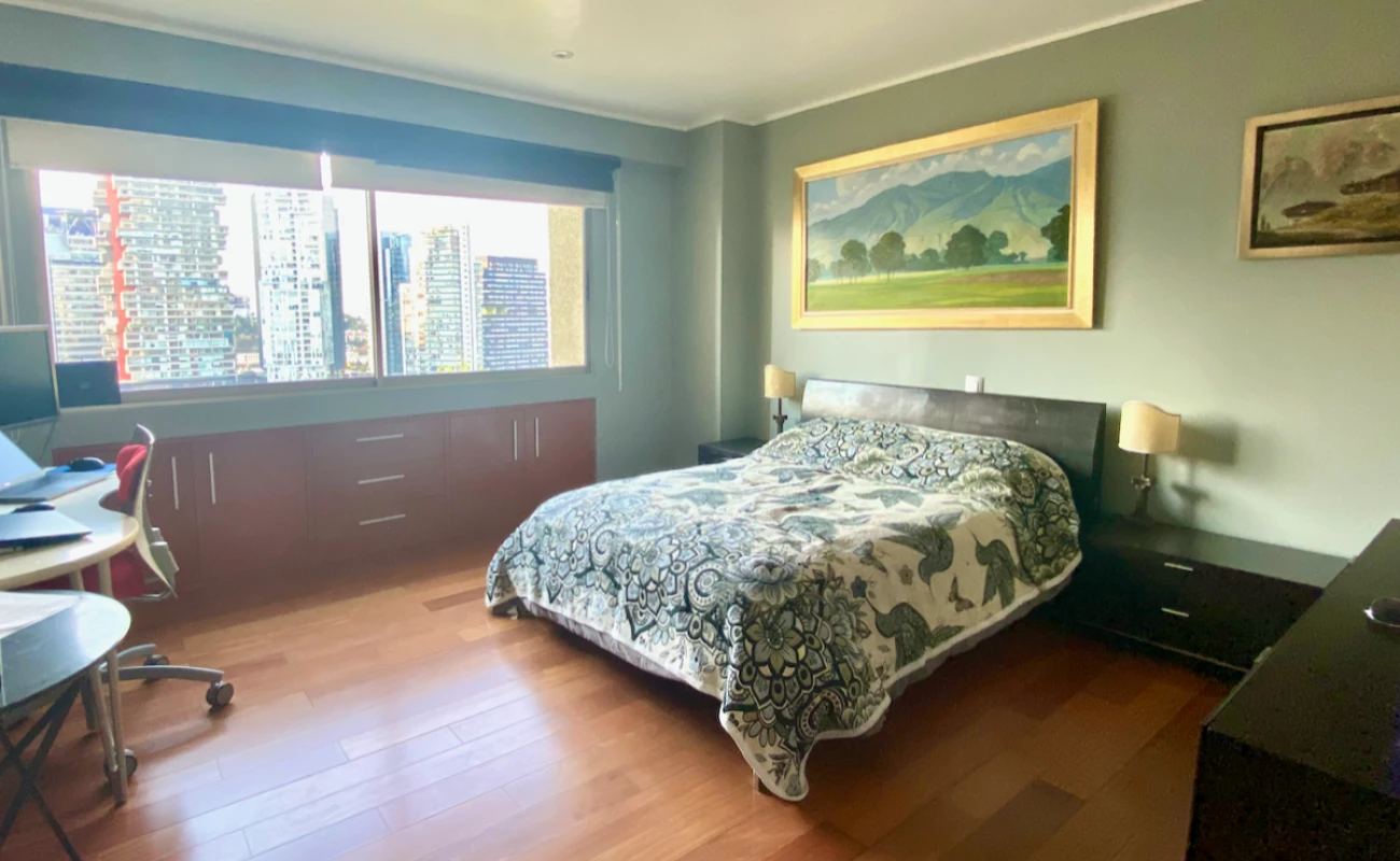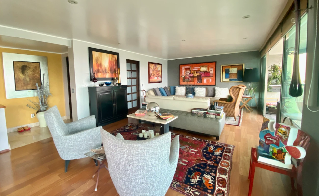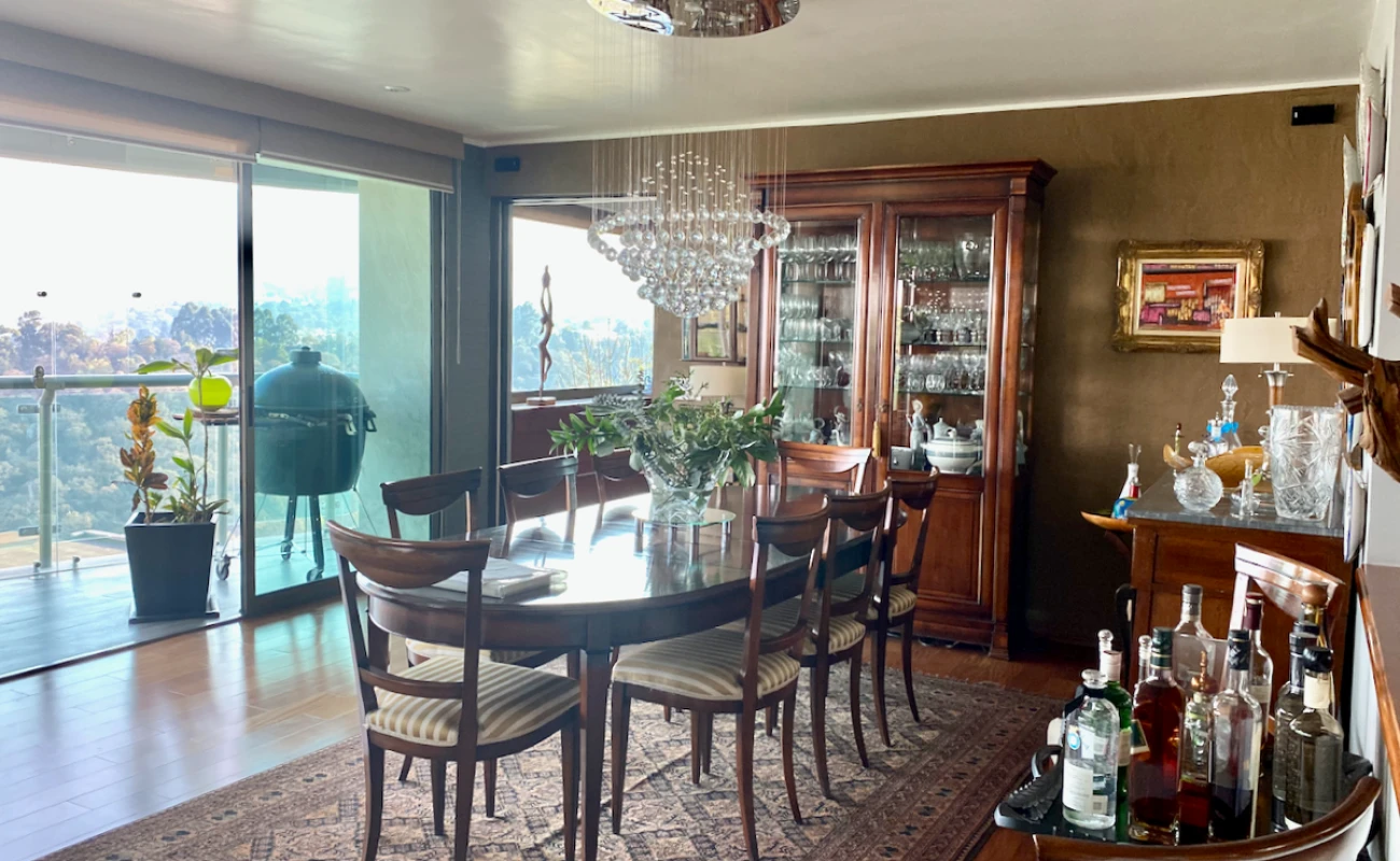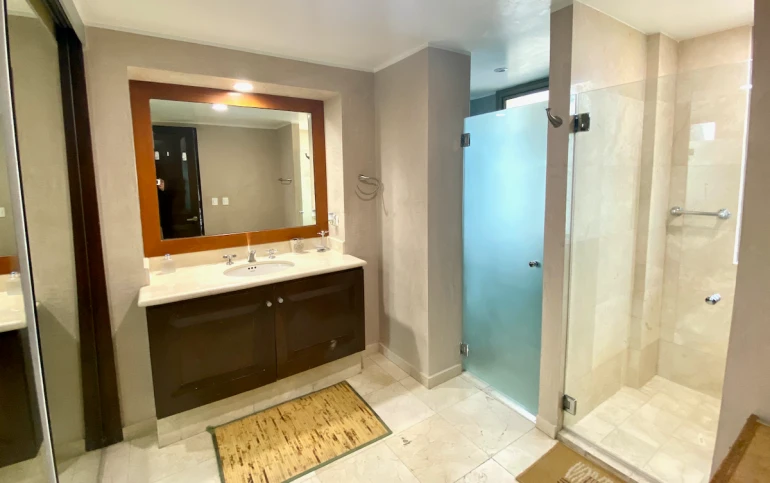 Precioso departamento con amplios espacios, finos acabados, mucha luz natural y vista panorámica desde todas las áreas. Cuenta con amplia área social que se integra completamente a la terraza. La cocina es cerrada con acceso al family- desayunador. Además, tiene un espacioso cuarto de TV y tres recámaras con baño propio, la principal con vestidor y closet. Amenidades: alberca techada, gimnasio jardín con juegos infantiles y salón de usos múltiples. Condominio con estricta vigilancia.