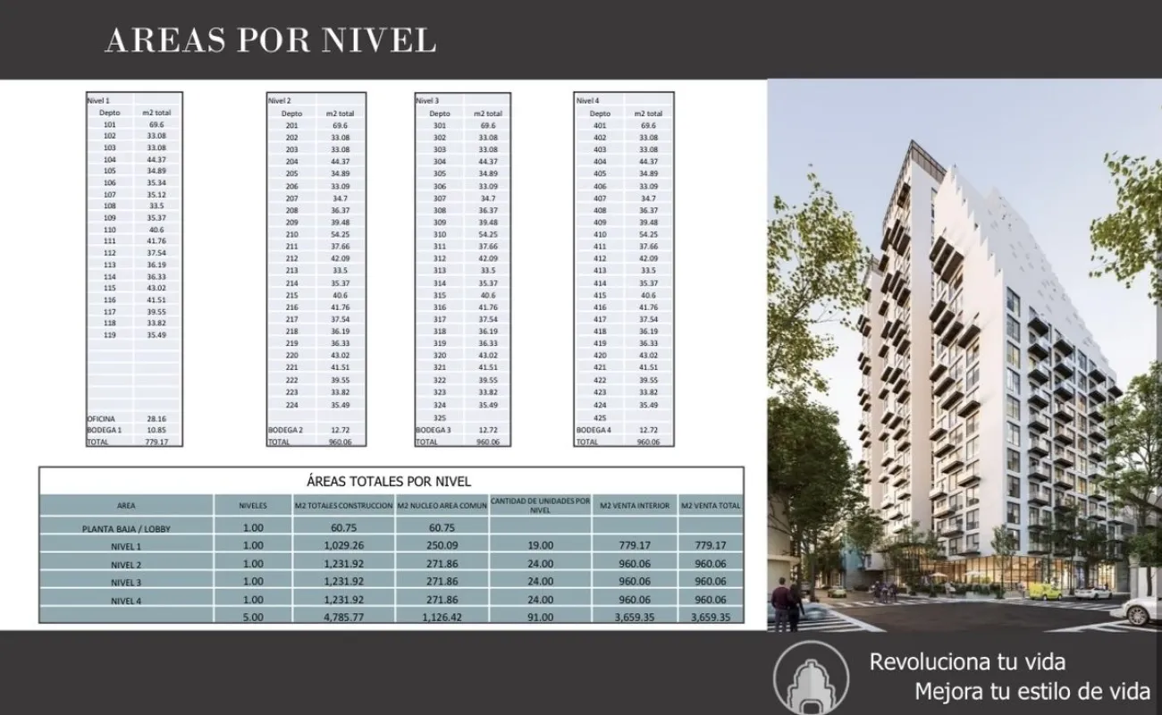 Venta de departamentos del piso 1 al 4 Precio por M2 $60,000