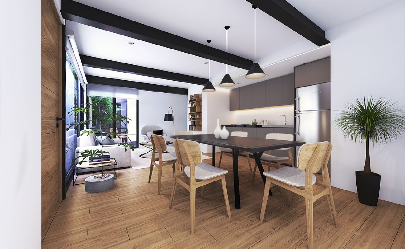 Hay de 1 y 2 recámaras, sala y comedor, 1.5 o 2.5 baños, los hay con terraza o con roof garden, y algunos con ambos, la mayoría con un lugar de estacionamiento, acabados de primera calidad.