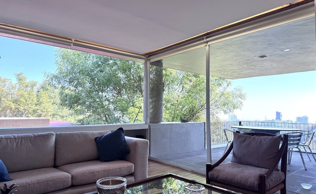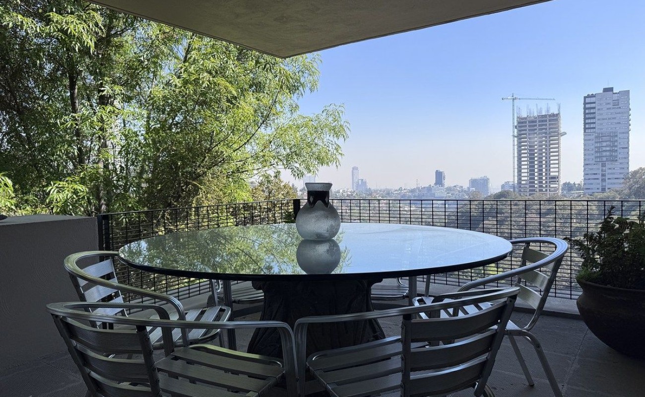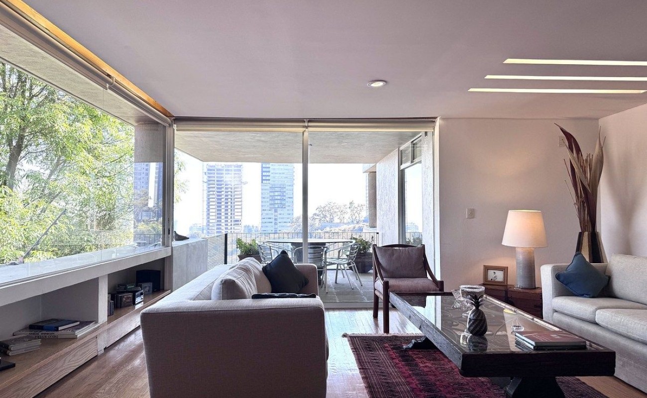 Edificio de solamente 6 departamentos con las Mejores vistas. Tiene una terraza estupenda con vista verde a la barranca. La distribución es magnífica. Cuenta con sala de tele y amplio salón familiar.