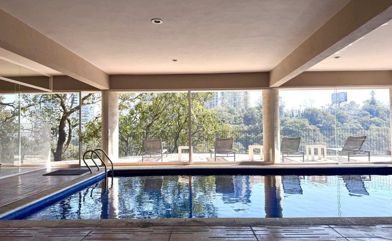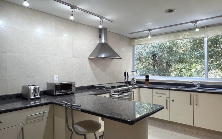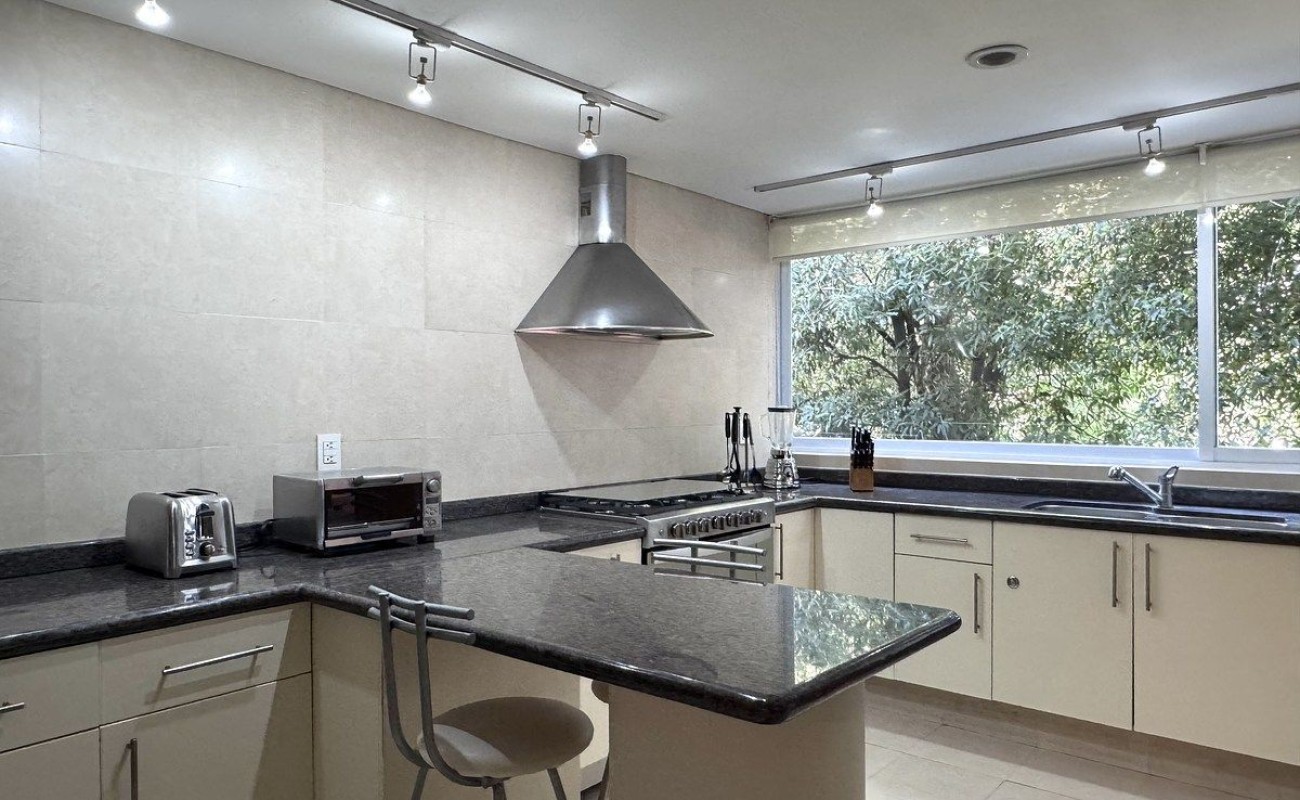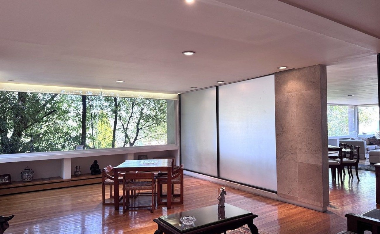 Edificio de solamente 6 departamentos con las Mejores vistas. Tiene una terraza estupenda con vista verde a la barranca. La distribución es magnífica. Cuenta con sala de tele y amplio salón familiar.