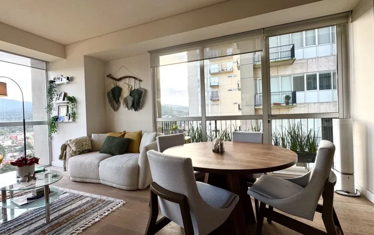 PRECIOSO DEPARTAMENTO EN ESQUINA CON DOS BALCONES INUNDADO DE LUZ EN LA MEJOR TORRE DEL DESARROLLO. VISTA FRANCA VERDE, DEPA CALIENTITO. UNA RECAMARA, VESTIDOR, 2 BALCONES, COCINA ABIERTA, CUARTO DE LAVADO, DOS LUGARES DE ESTACIONAMIENTO, BODEGA.