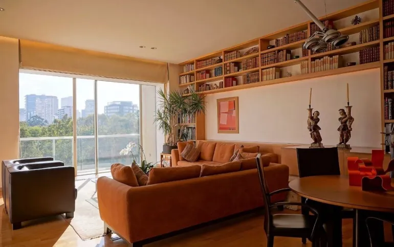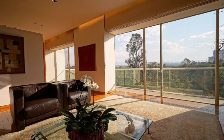 Departamento Pent House de 2 cuartos y Estudio (puede ser una tercera recámara) 358 m2 departamento 55 m2 estudio 9.33 m2 bodega 1 sótano 1 10.21 m2 bodega 2 sótano 4 4 lugares de estacionamiento (E1, frente a elevadores