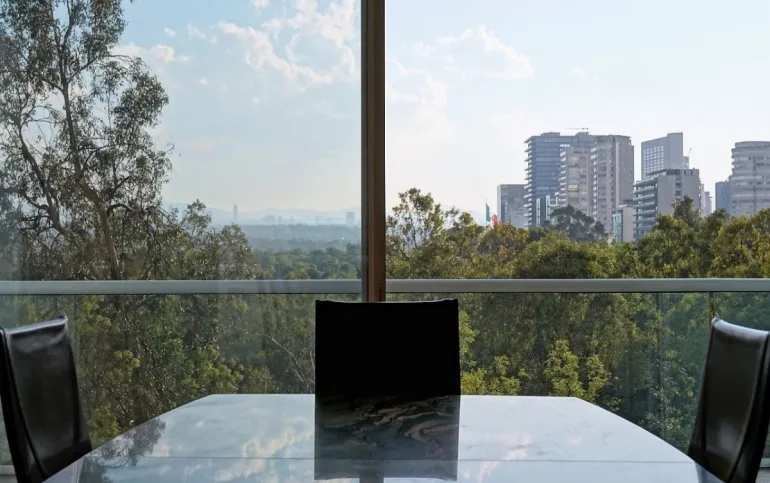Departamento Pent House de 2 cuartos y Estudio (puede ser una tercera recámara) 358 m2 departamento 55 m2 estudio 9.33 m2 bodega 1 sótano 1 10.21 m2 bodega 2 sótano 4 4 lugares de estacionamiento (E1, frente a elevadores