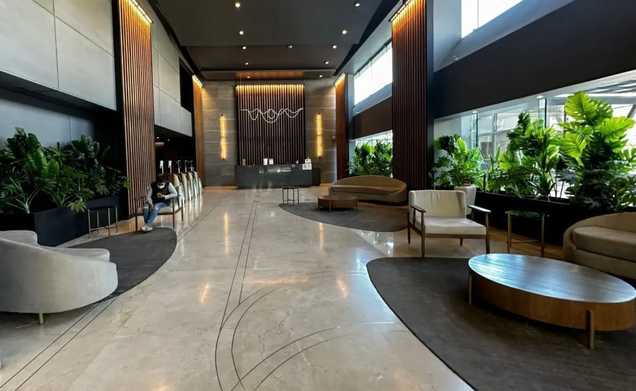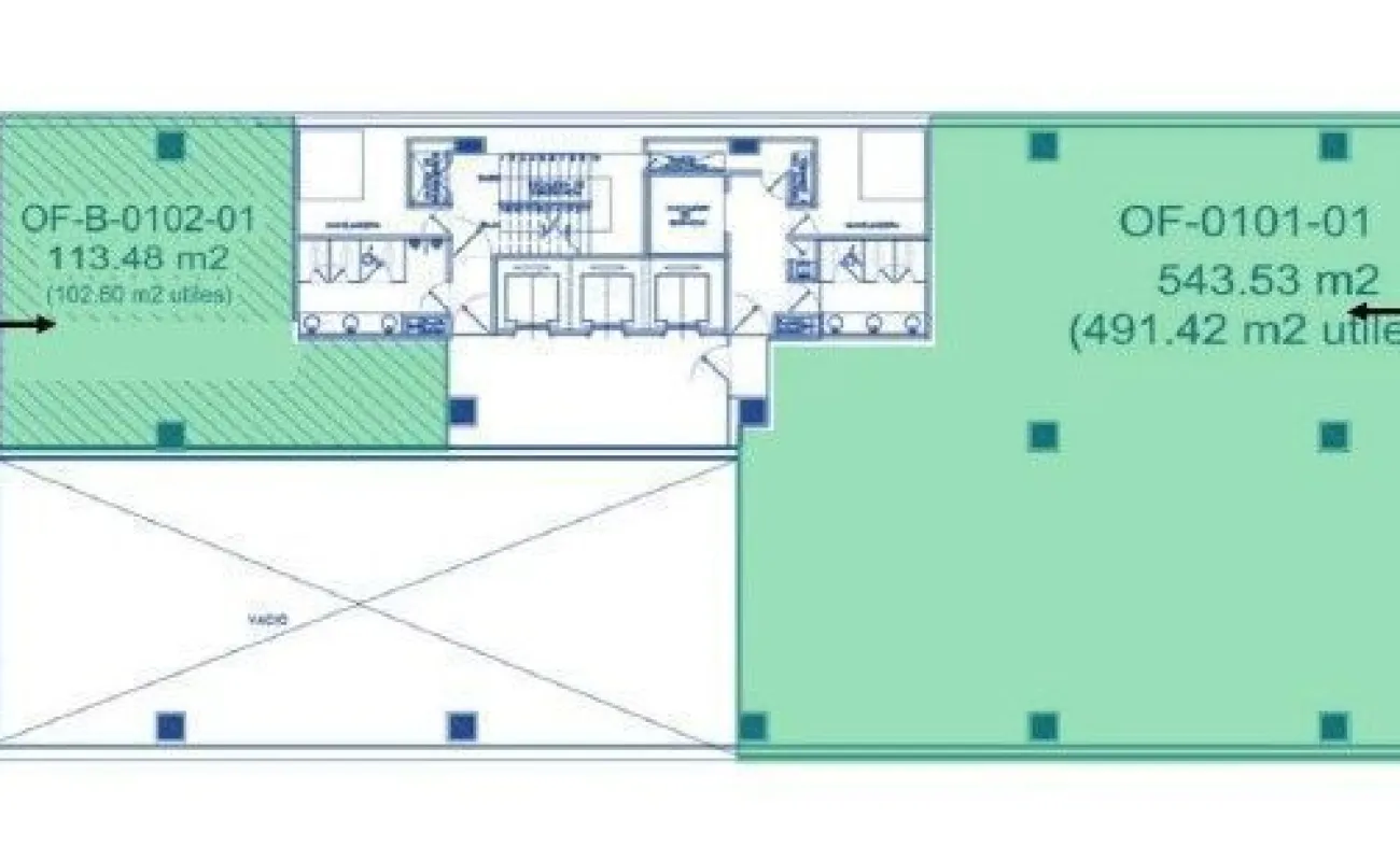 Edificio inteligente con dos torres de oficinas. La primera con 22 niveles y la segunda con 8 y 3 niveles de área comercial. Cuenta con 5 niveles de estacionamiento con capacidad para más de 900 autos.