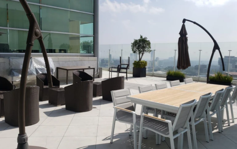 Extras: gym, alberca, áreas verdes, terrazas panorámicas, salón de fiestas, salón de adultos, terraza con asador. Y área de coworking.