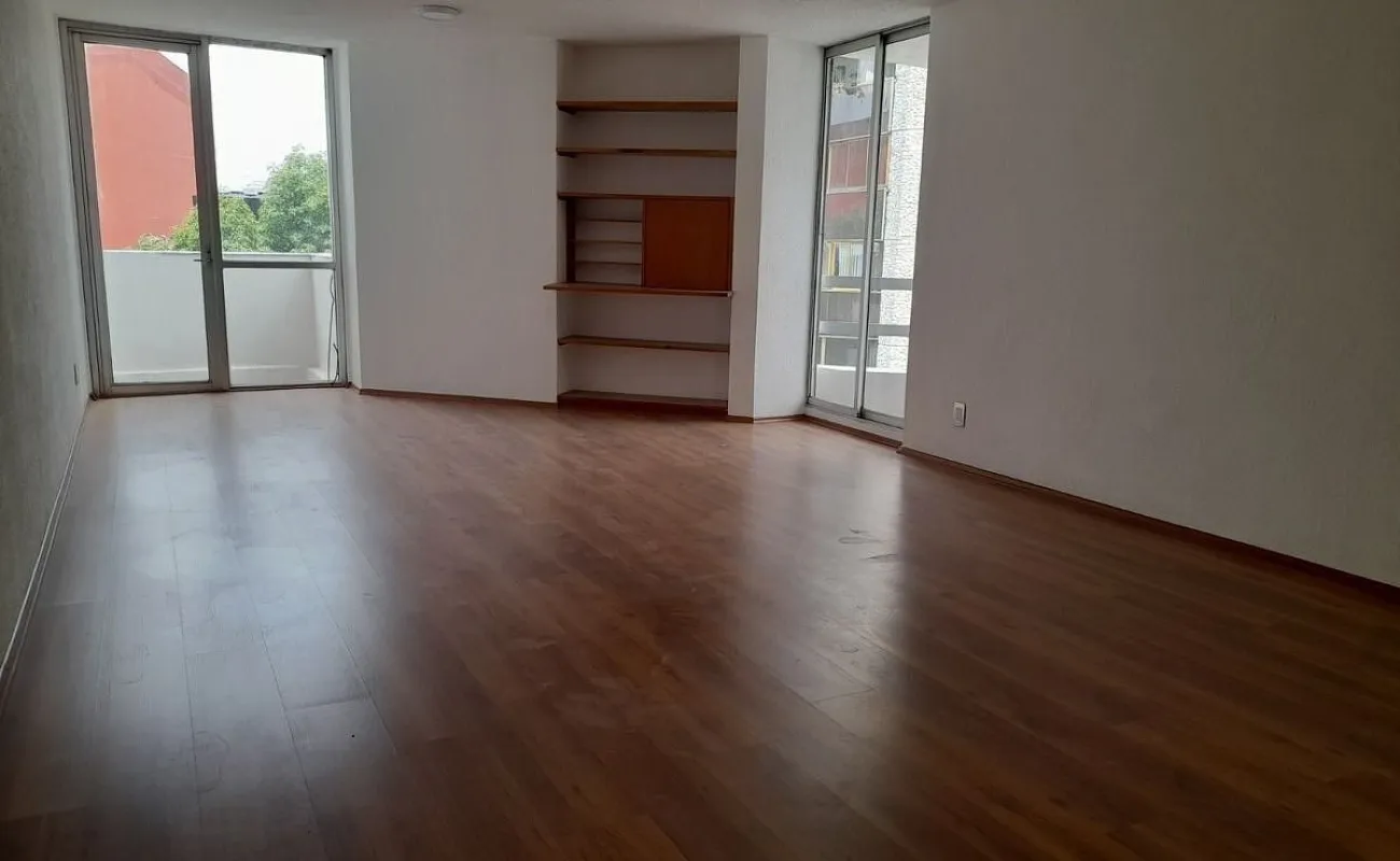 Departamento muy iluminado, amplios espacios, muy bien conservado, en excelente ubicación con acceso rápido a Río Mixcoac y a Av. Universidad a dos cuadras de Mitikah, amplia estancia con dos balcones, cocina cerrada integral nueva, recámara principal con vestidor y baño, recámaras secundarias con closets y comparten baño.