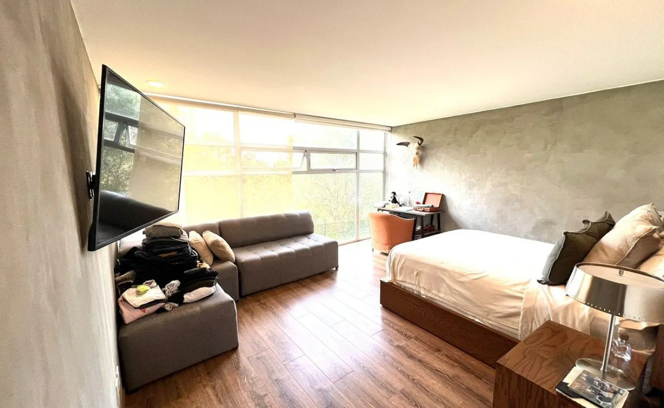 Dispone de 3 recámaras, cada una con baño completo y vestidor. La recámara principal se ubica en el primer nivel con salida al jardín; recámaras secundarias en el segundo nivel. Incluye family room, cocina amplia, desayunador o antecomedor con salida al jardín, cuarto de lavado y cuarto de servicio con baño completo.
