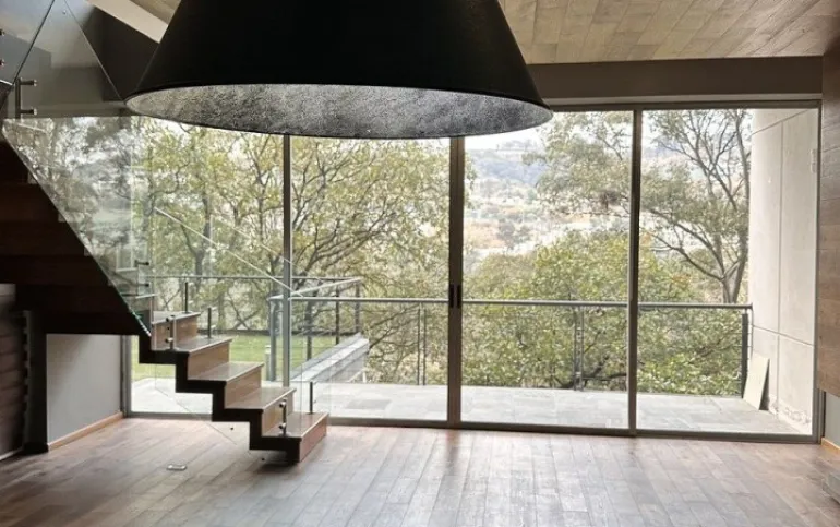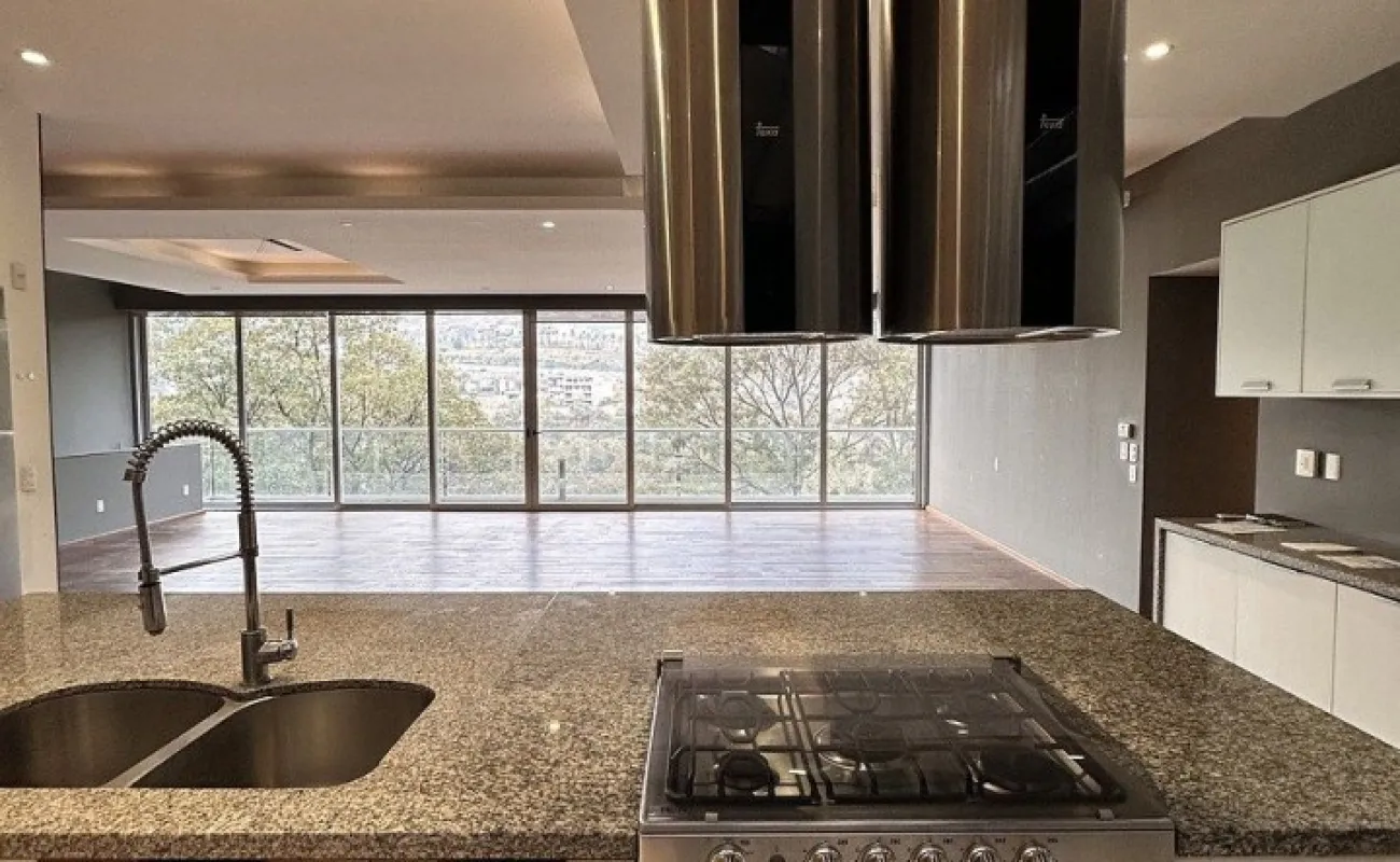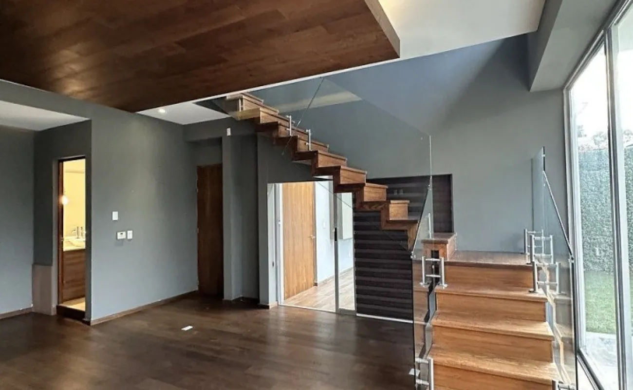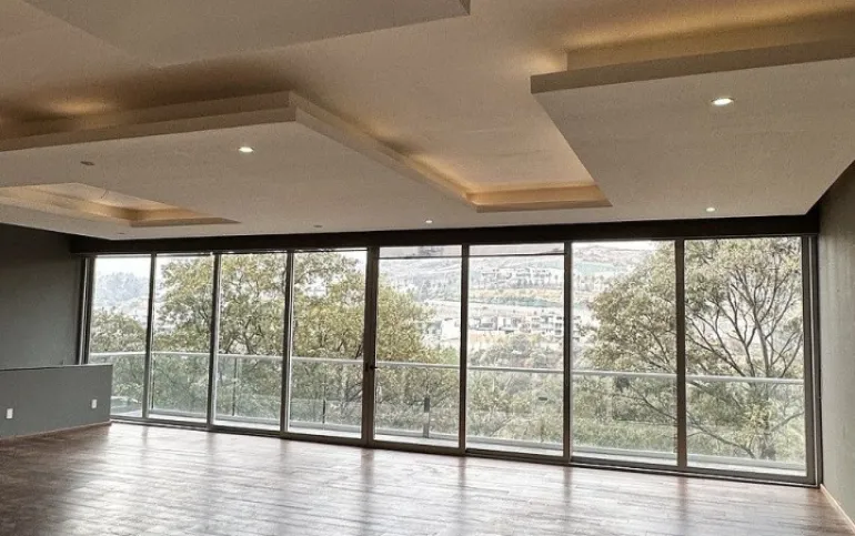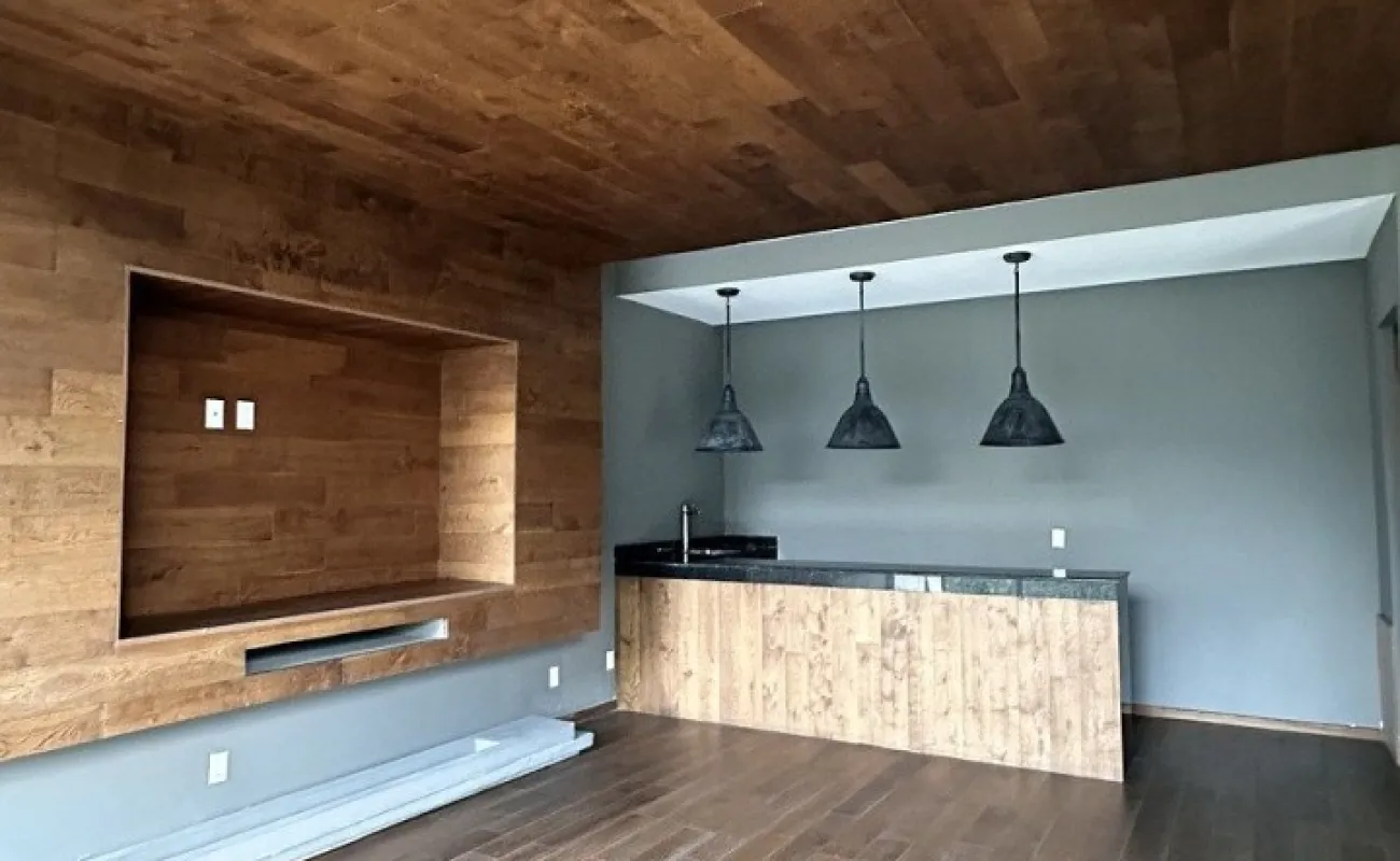 Segundo piso sala comedor con salida a la terraza con lindas vistas arboladas, cocina equipada abierta con refrigerador empotrado, la cocina tiene salida a una amplia terraza con techo removible.