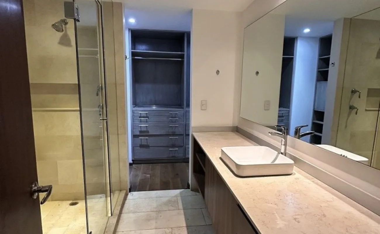 El departamento tiene tres amplias recámaras cada una con vestidor y baño