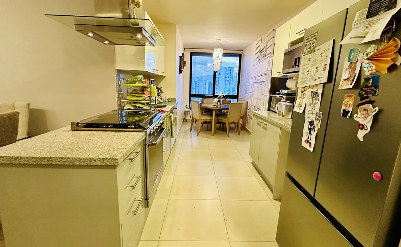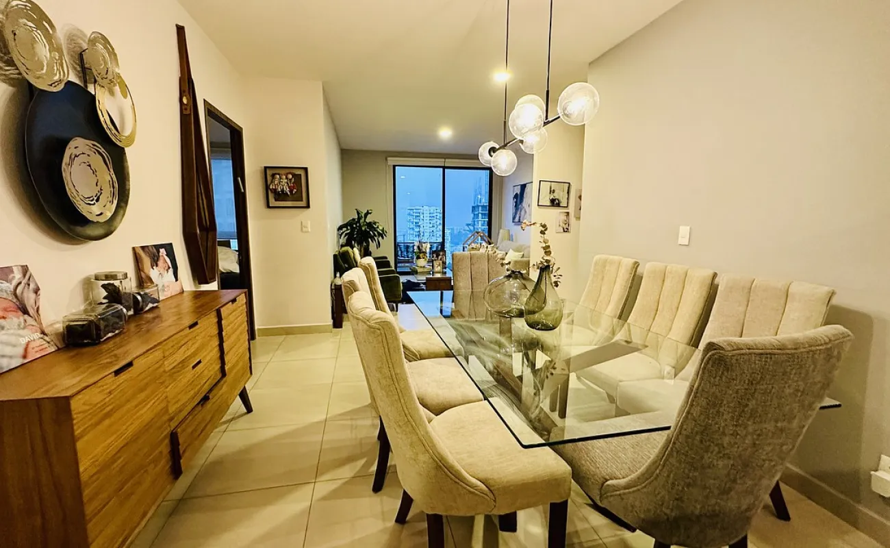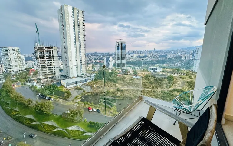 Este increíble departamento destaca por su excelente estado, distribución funcional y una vista única a diferentes puntos de Bosque Real. Cuenta con 3 recamaras; la principal con vestidor, clóset y baño completo, las secundarias con closet y comparten baño; espacio de sala y comedor de buen tamaño con acceso a terraza privada; medio baño de visitas; family room, cocina abierta integral equipada y espacio para desayunador, área de lavandería y cuarto de servicio completo. 2 lugares de estacionamiento y bodega. Excelente iluminación natural y ventilación, además de vistas panorámicas a Bosque Real.