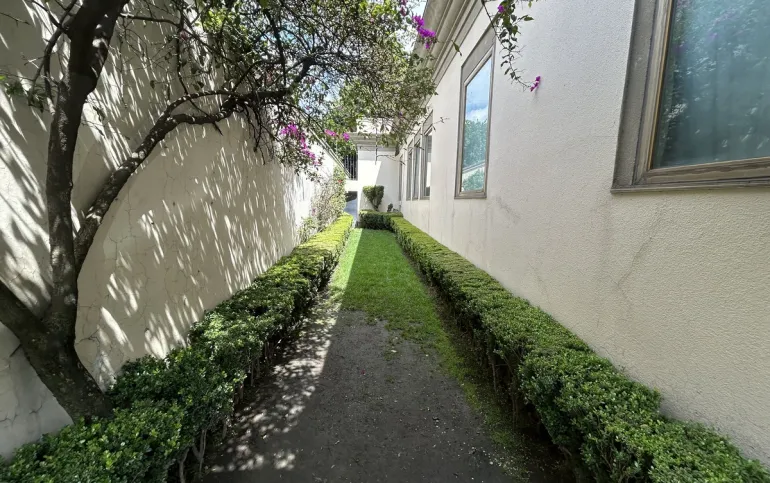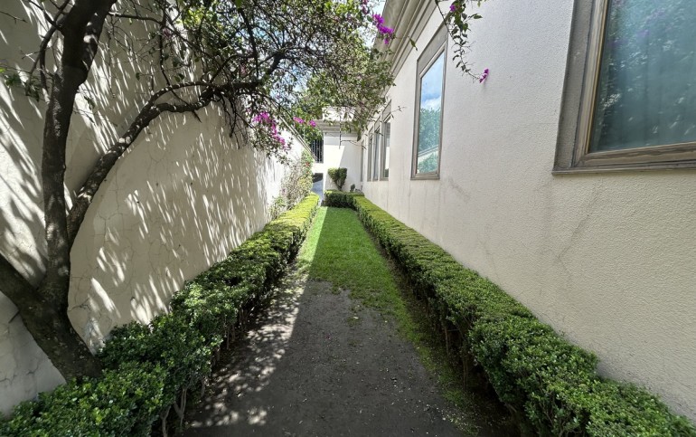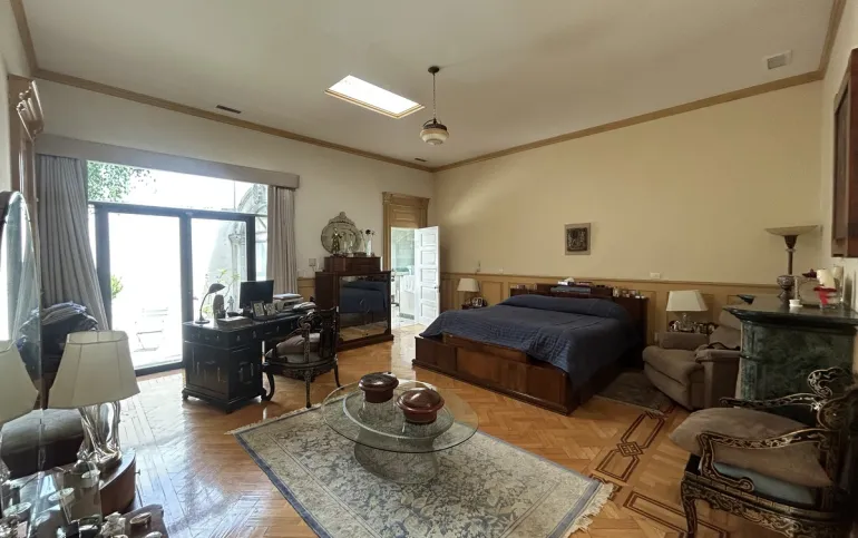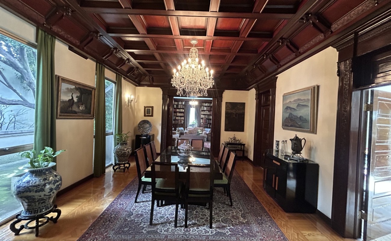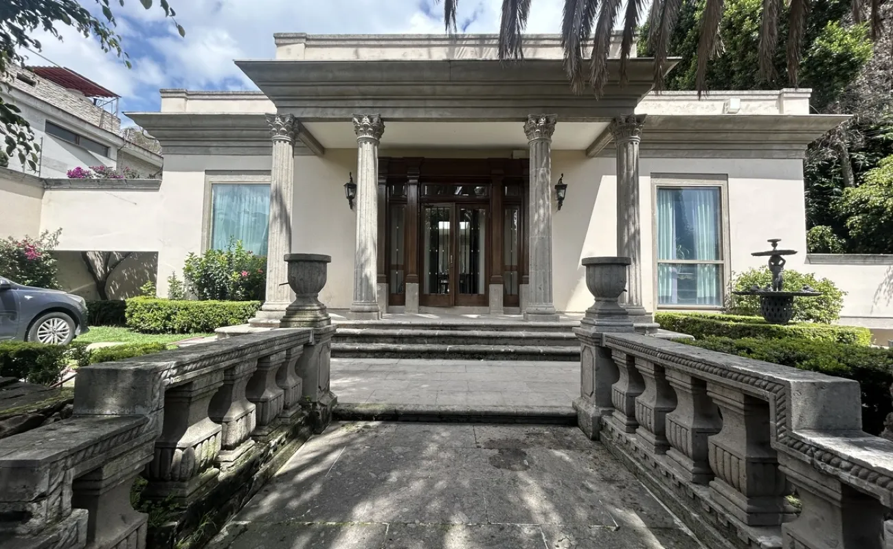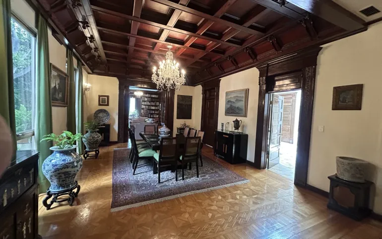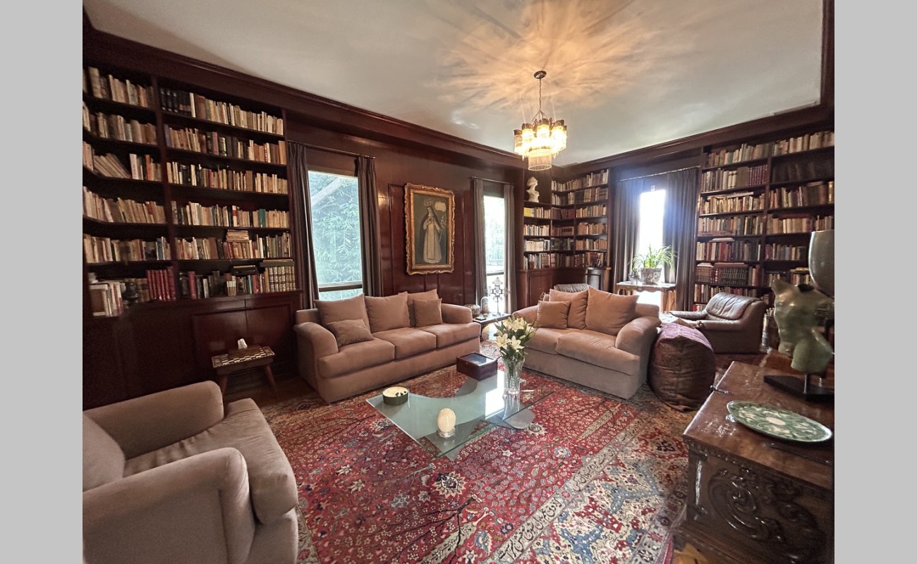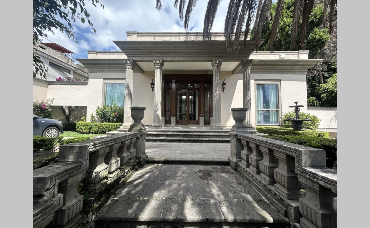 Primera sección de Bosques. Construida por el arquitecto Jorge Loyzaga. Tiene finos materiales: madera, mármol, cantera, artesonado del comedor, libreros y muros de madera en sala- biblioteca, puertas gruesas con remates y pisos de parquet. Jardín a un lado y al frente,
