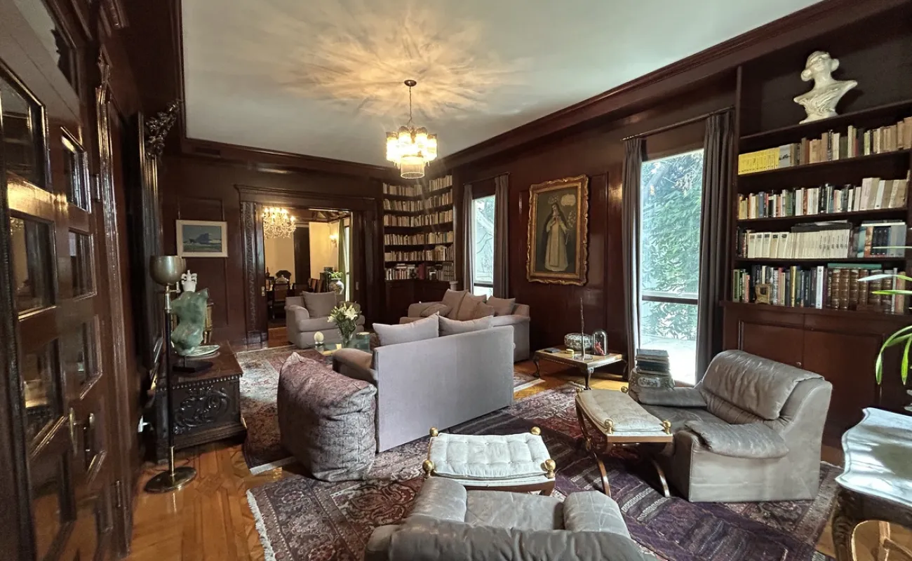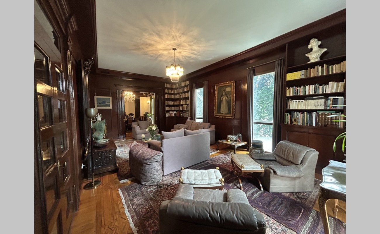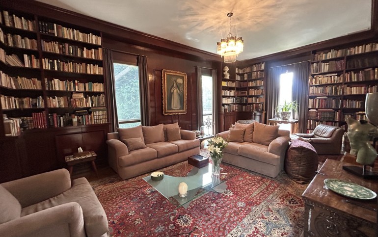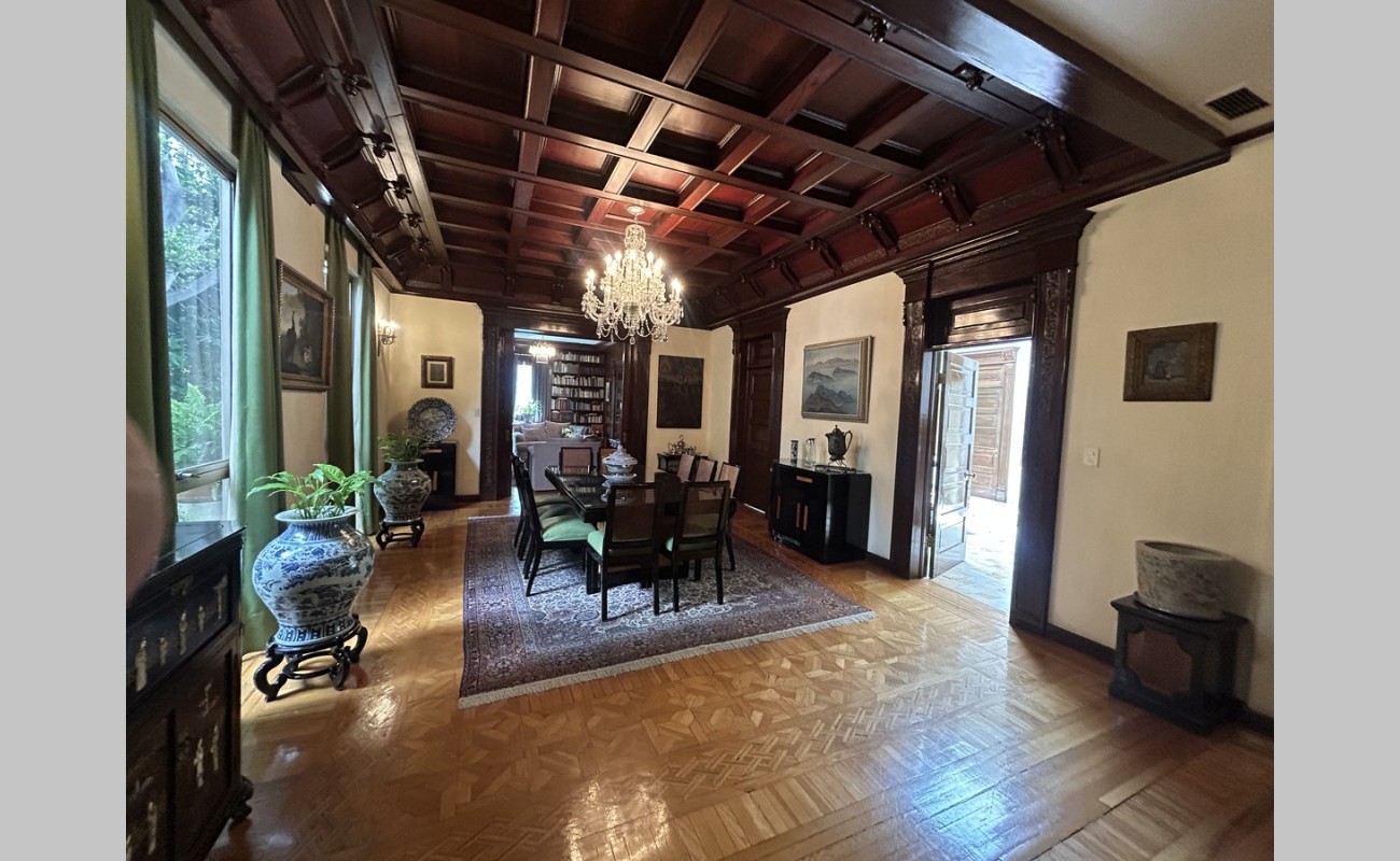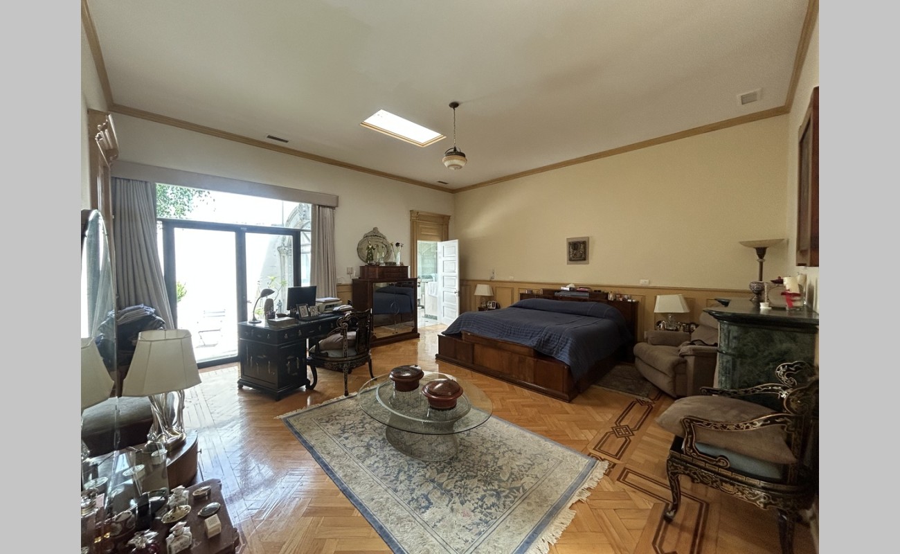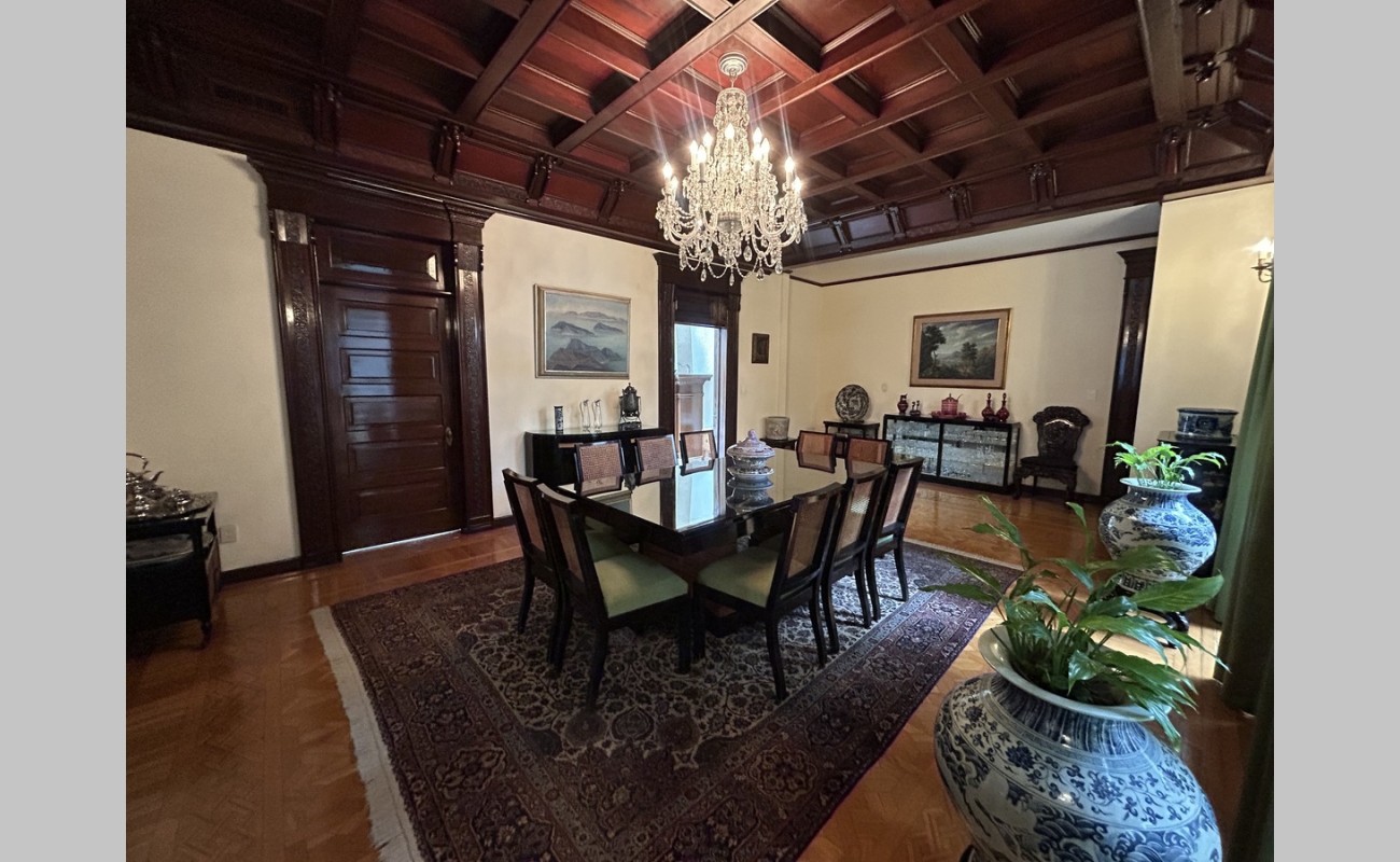 Primera sección de Bosques. Construida por el arquitecto Jorge Loyzaga. Tiene finos materiales: madera, mármol, cantera, artesonado del comedor, libreros y muros de madera en sala- biblioteca, puertas gruesas con remates y pisos de parquet. Jardín a un lado y al frente,