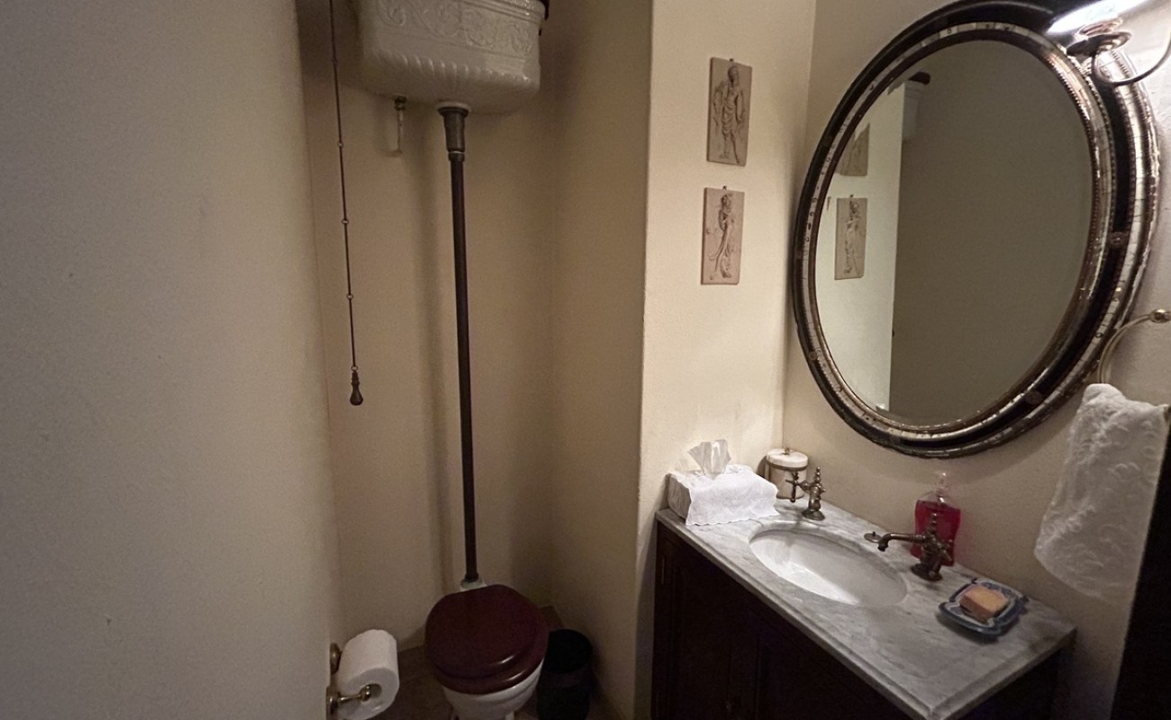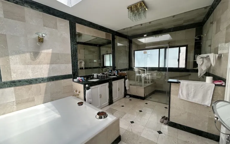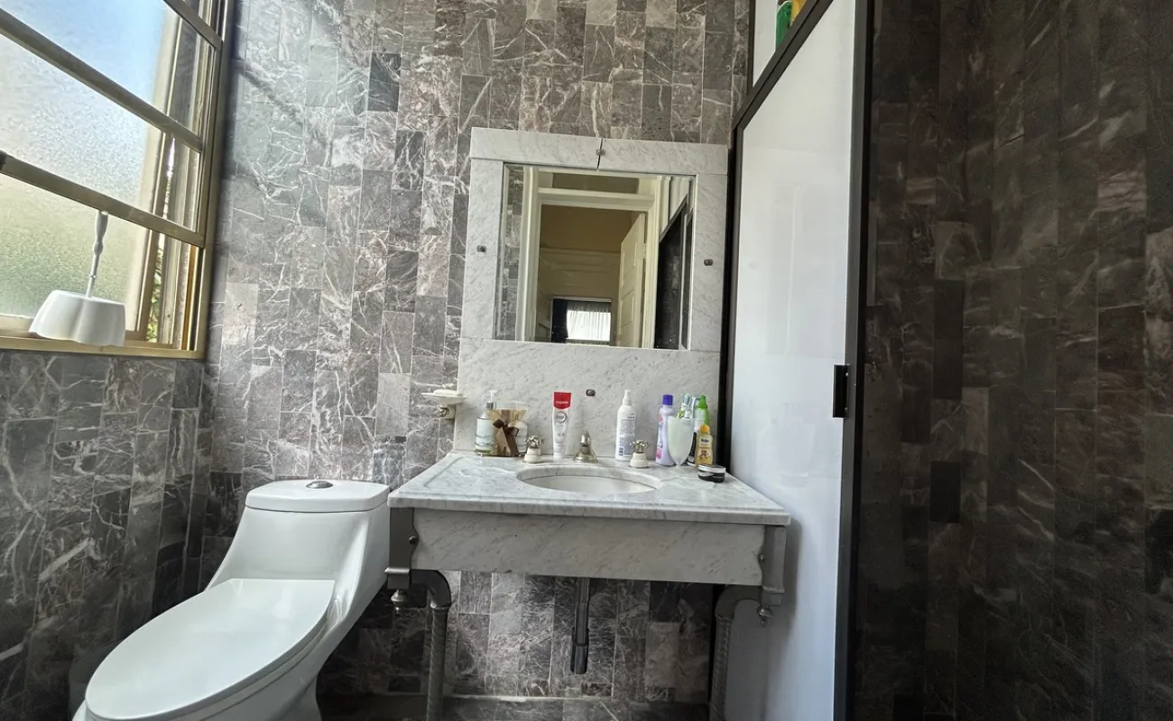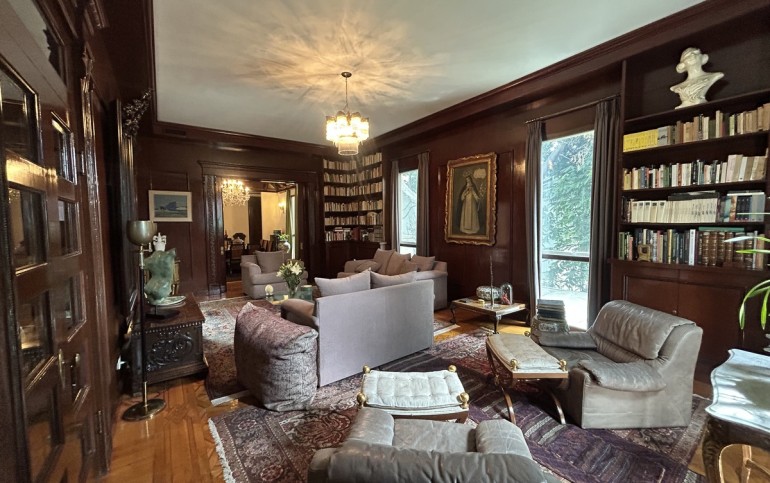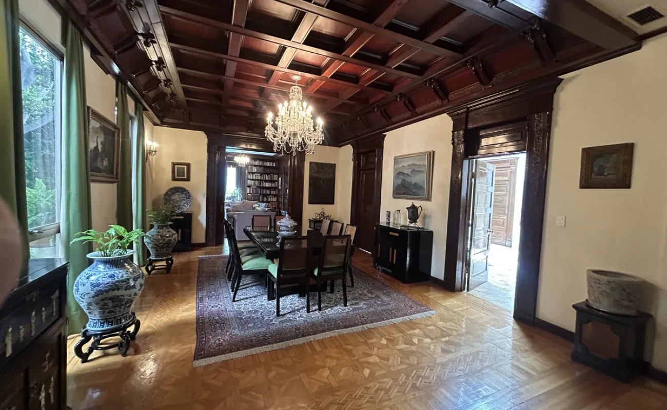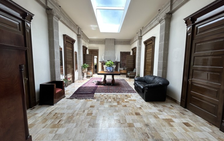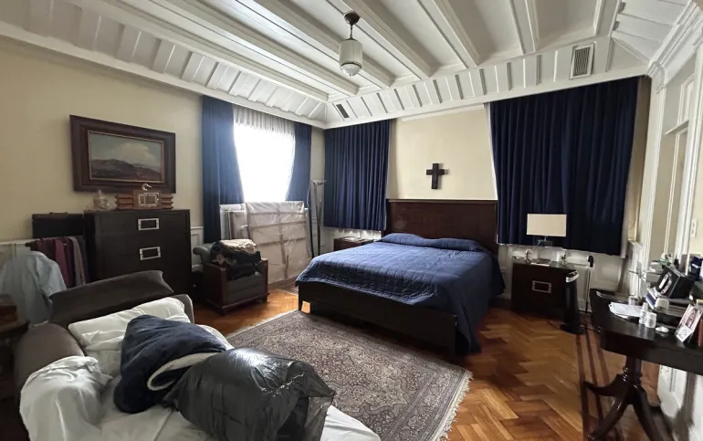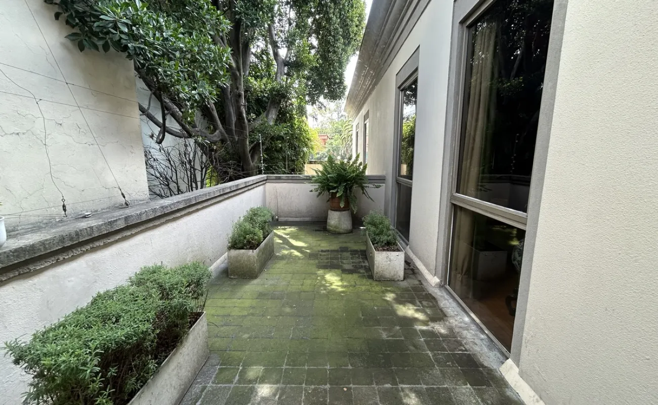Primera sección de Bosques. Construida por el arquitecto Jorge Loyzaga. Tiene finos materiales: madera, mármol, cantera, artesonado del comedor, libreros y muros de madera en sala- biblioteca, puertas gruesas con remates y pisos de parquet. Jardín a un lado y al frente,