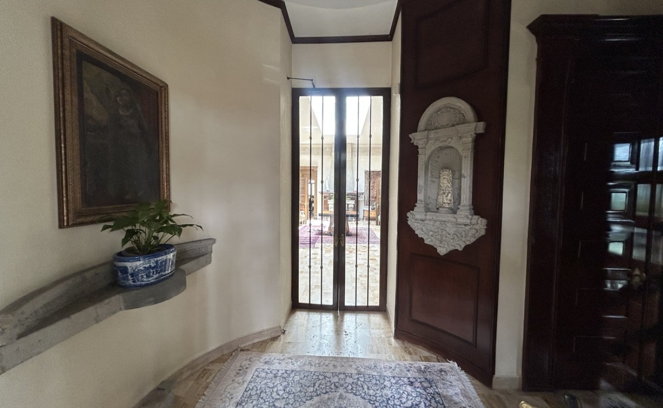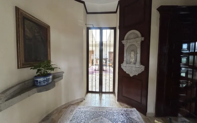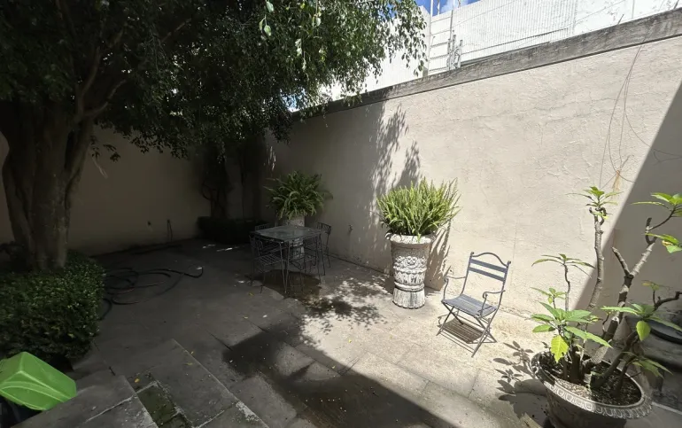 Pórtico y patio central, 3 recámaras con walk in closet, 3 1/2 baños, sala, biblioteca y comedor, cocina integral.