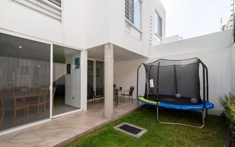 Vive en una de las mejores zonas donde encontrarás todo tipo de servicios, entretenimiento, parques y demás, El Refugio. Ven y visita esta hermosa casa en condominio de 3 amplios pisos con excelente iluminación con doble filtro de seguridad: DISTRIBUCIÓN: 1er. PISO: - Estacionamiento para 2 coches - Sala - Comedor - Medio baño - Cocina integral de concepto abierto con encimeras de granito (alacena, estufa, campana, horno, barra de desayuno) - Jardín de 20 m2 - Terraza de 13 m2 - Cuarto de lavado 2do. PISO: - Recámara principal con vestidor y baño completo - 2 Recámaras secundarias con closet (una con balcón) - Baño completo compartido 3er. PISO: - Roof Garden con sala de tv u opción de 4ta. Recámara con baño completo - Muro verde con sistema de riego automático - Asador - Tarja - Terraza AMENIDADES: - Alberca - Sala de usos múltiples - Juegos infantiles Además la propiedad cuenta también con: - Cisterna de 2,800 litros - Hidroneumático - Gas natural - Persianas y mosquiteros - Focos led en toda la casa Costo de Mantenimiento Mensual: $1,040.00 !!!Haz tu cita te esperamos¡¡¡