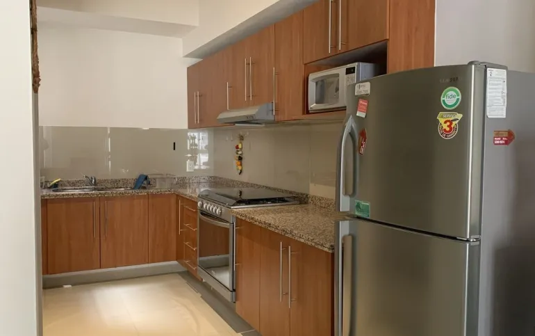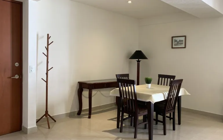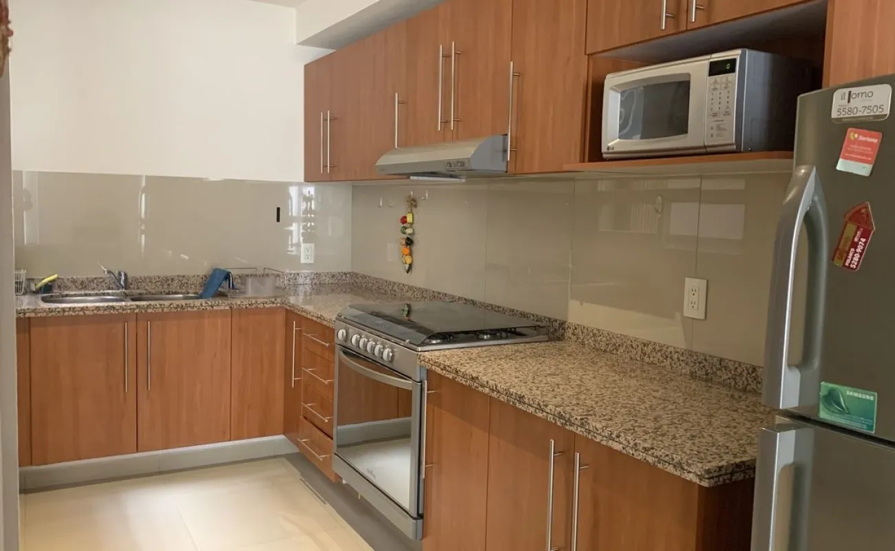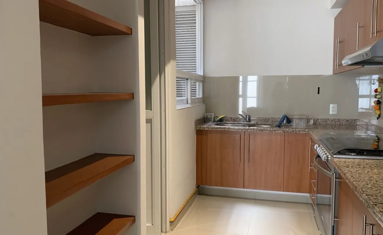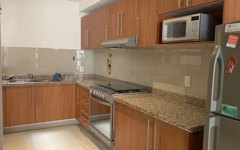 Depto con mucha luz, piso 14 Torre Luna con superficie de 100m y techos altos, sala comedor y cocina abierta de muy buen tamaño, área pequeña de lavanderia con fregadero y centro de lavado. 2 recámaras la segunda con su baño fuera y la principal con baño (con tina) dentro de la recámara y un vestidor muy amplio y alto. tiene 2 estacionamientos muy cercanos a la salida y solo se sube medio nivel. El depto esta super cuidado y en perfecto estado. Listo para entrar quien lo compre.