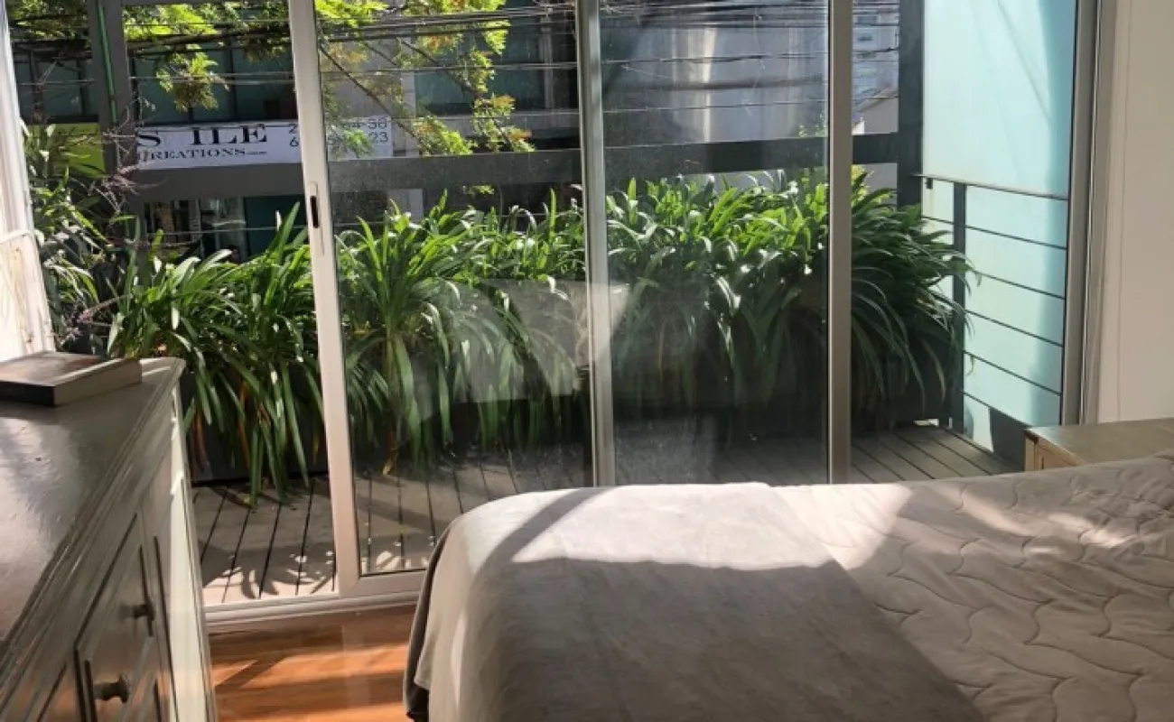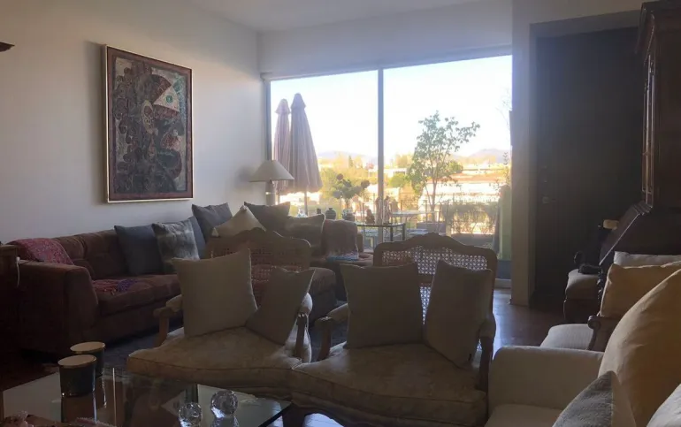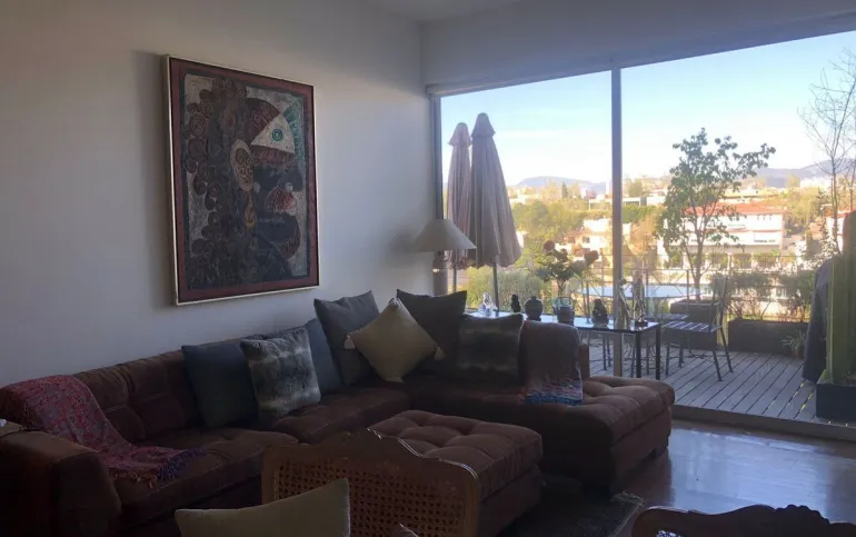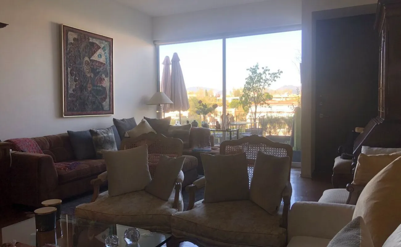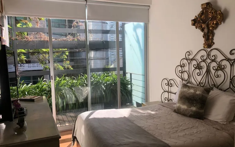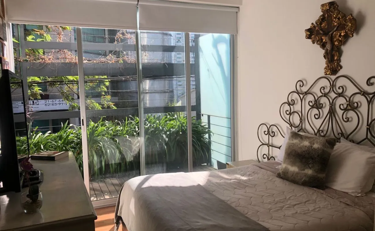 Increíble departamento de dos recámaras con terraza. Se sale a la terraza por la sala y la recámara principal.