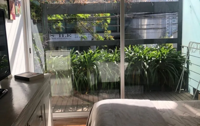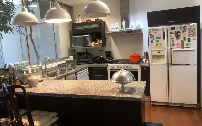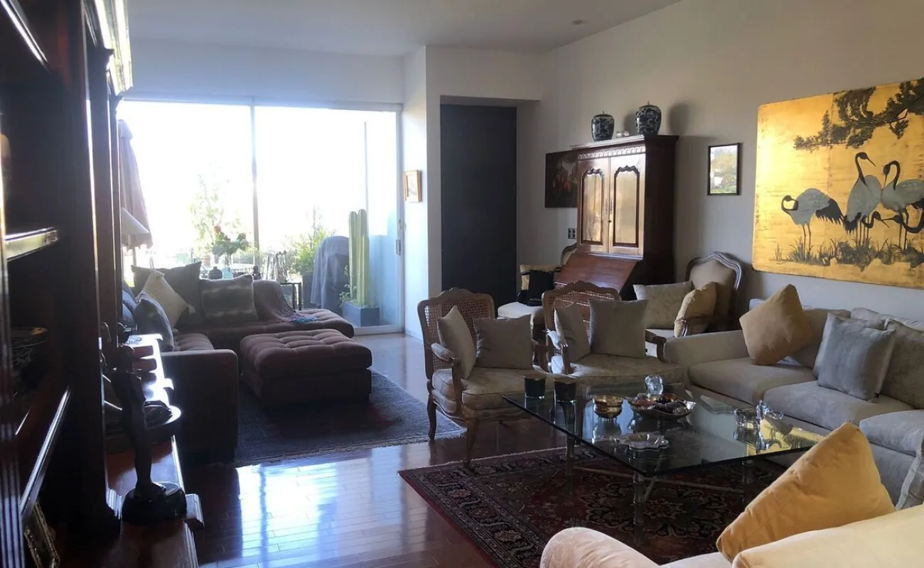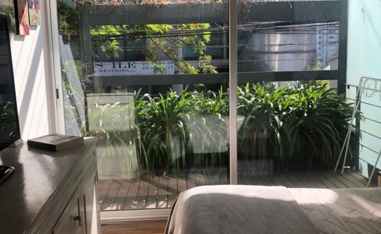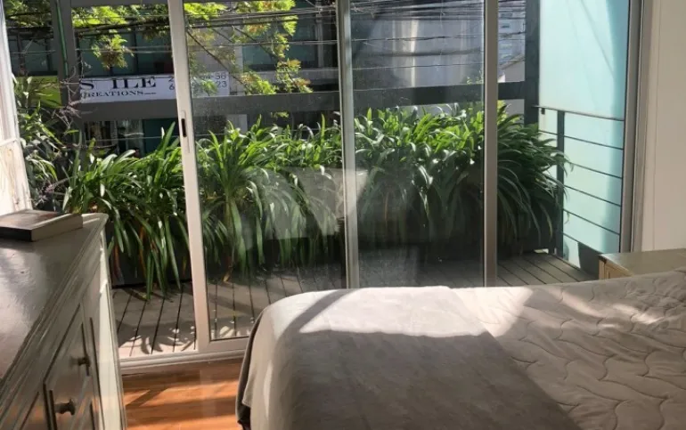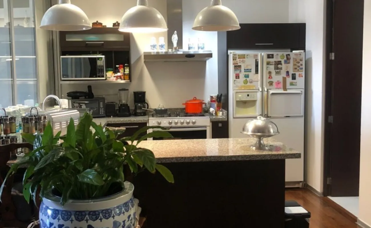 Increíble departamento de dos recámaras con terraza. Se sale a la terraza por la sala y la recámara principal.