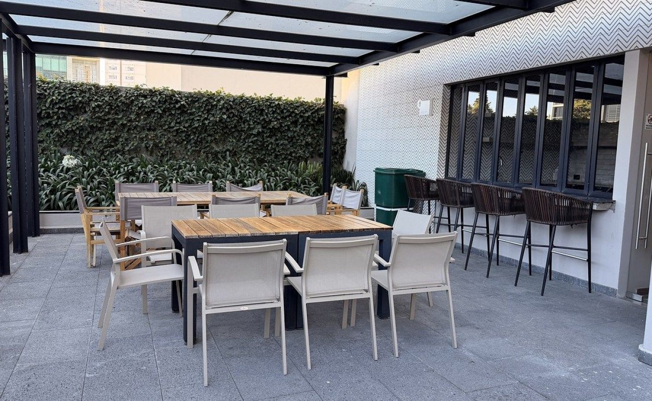 We cuenta con amenidades espectaculares: roof top con asadores, salón roof, alberca y jacuzzi, gimnasio, salón multiusos, ludoteca, coworking, cafetería, salón de belleza, spa y área de mascotas.