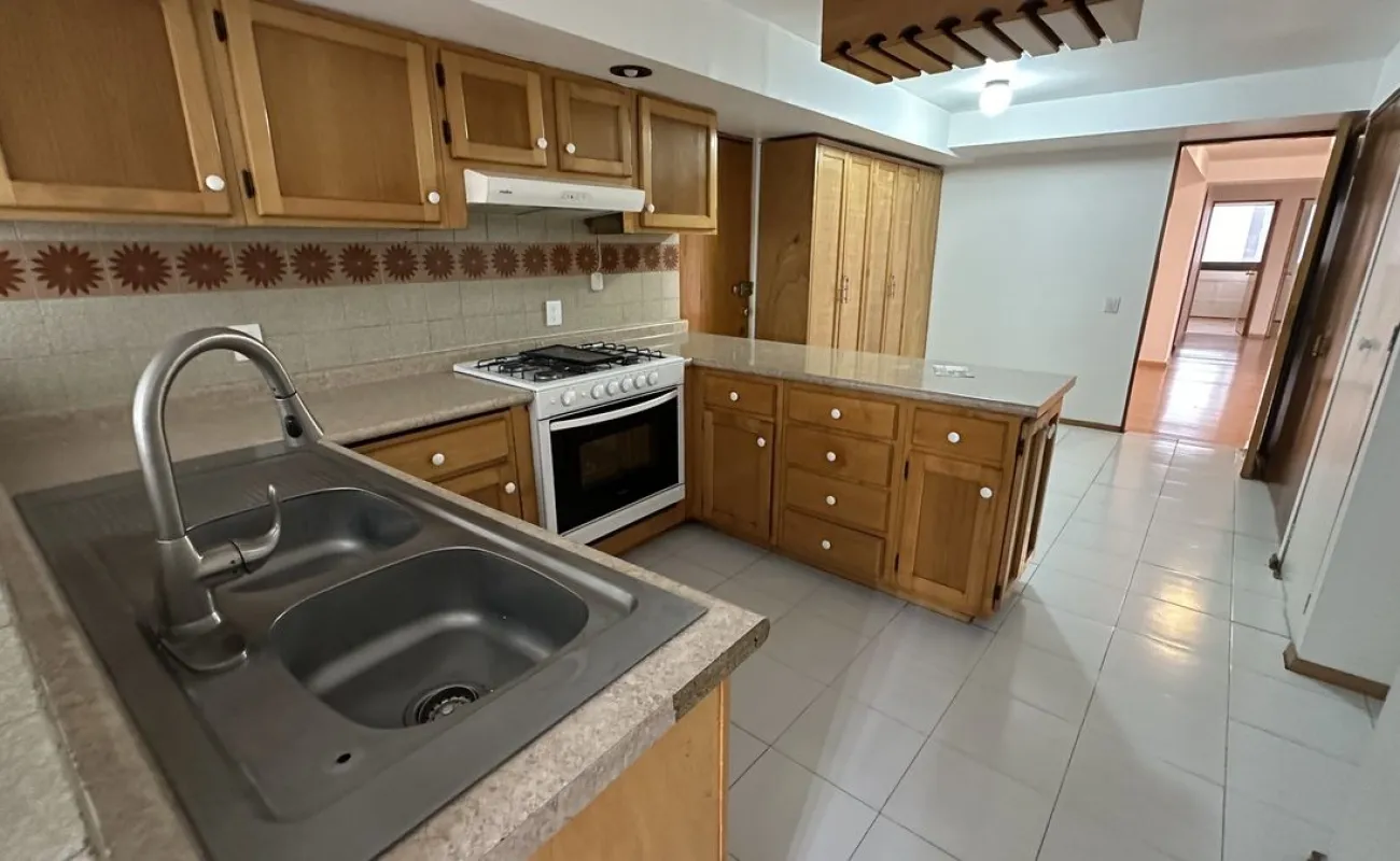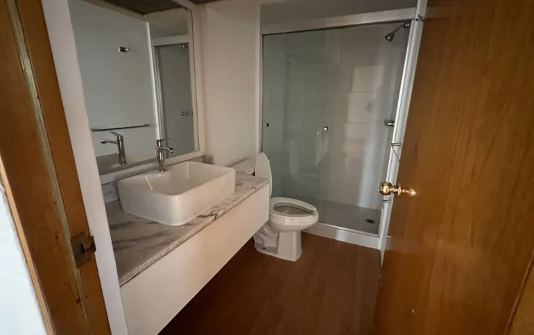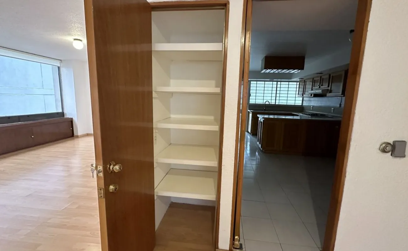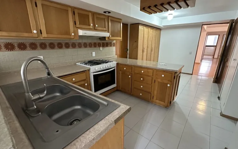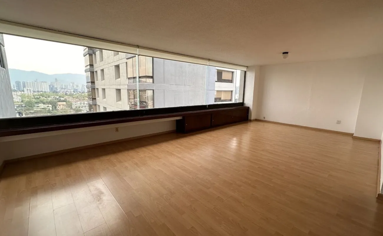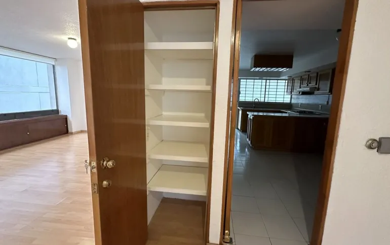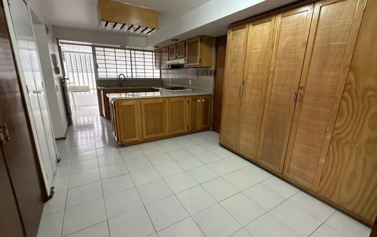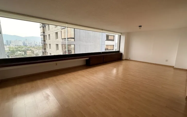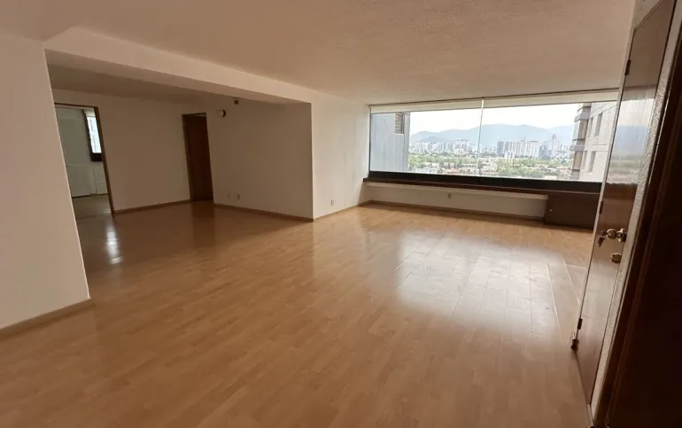 Departamento con acabados de primera listo para entrar, piso alto, muy iluminado y gran orientación. Cuenta con tres recamaras; la recamara principal con walking closet y baño completo, la primer recamara secundaria con closet y baño, la segunda recamara secundaria con closet y comparte baño con visitas; family; sala y comedor de gran tamaño, cocina de buen tamaño con área para desayunador, cuarto de servicio completo, área de lavandería y dos lugares de estacionamiento.