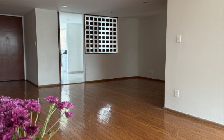 La Recamara Principal tuene walking closet y baño integrado. La recamara secundaria cuenta con closet. Él departamento tiene un estudio abierto, amplia cocina muy iluminada con cubierta de granito. Pisos de madera. Cuarto de servicio y lavado.