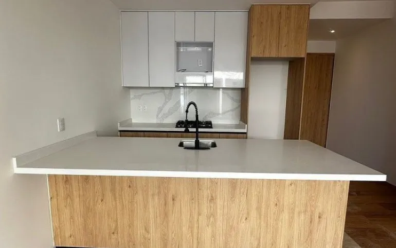 El departamento incluye 1 baño completo y una cocina integral equipada con línea blanca. Disfruta de un balcón privado y una terraza perfecta para relajarte. Además, cuenta con clóset para almacenamiento y el estado de conservación es excelente. Se ubica en el piso 6 y el edificio tiene 2 elevadores.