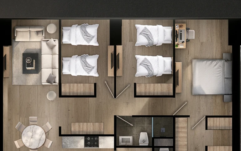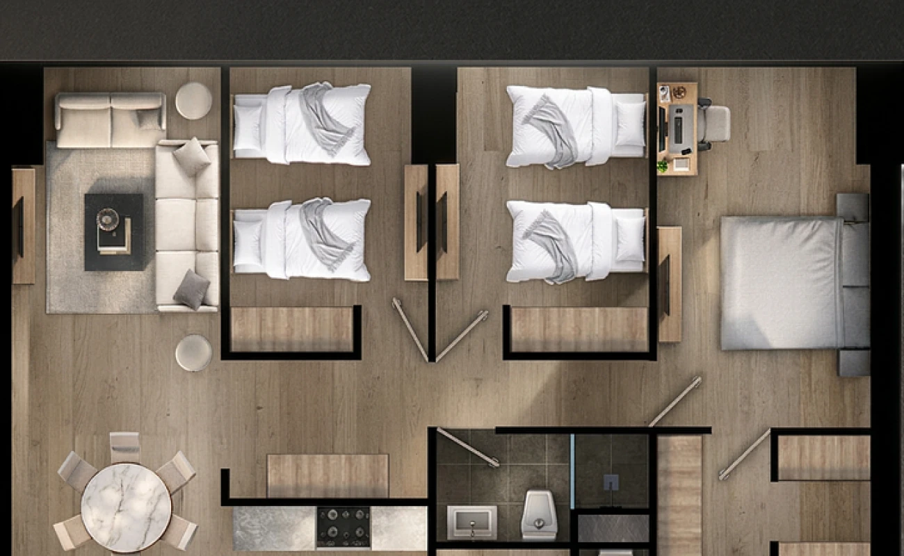 Departamentos de 2 y 3 recámaras diseñados para ofrecer confort, funcionalidad y una experiencia de vida contemporánea.