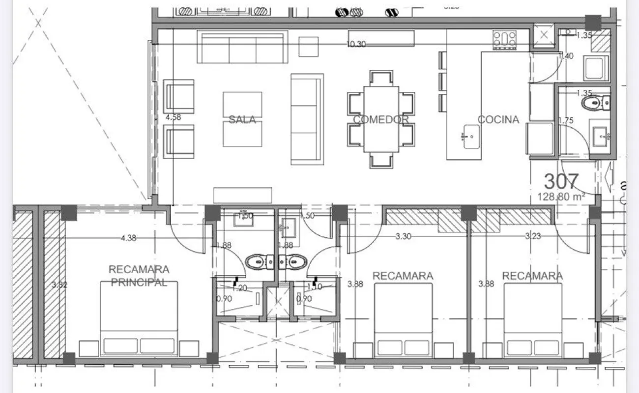 128.80 m²