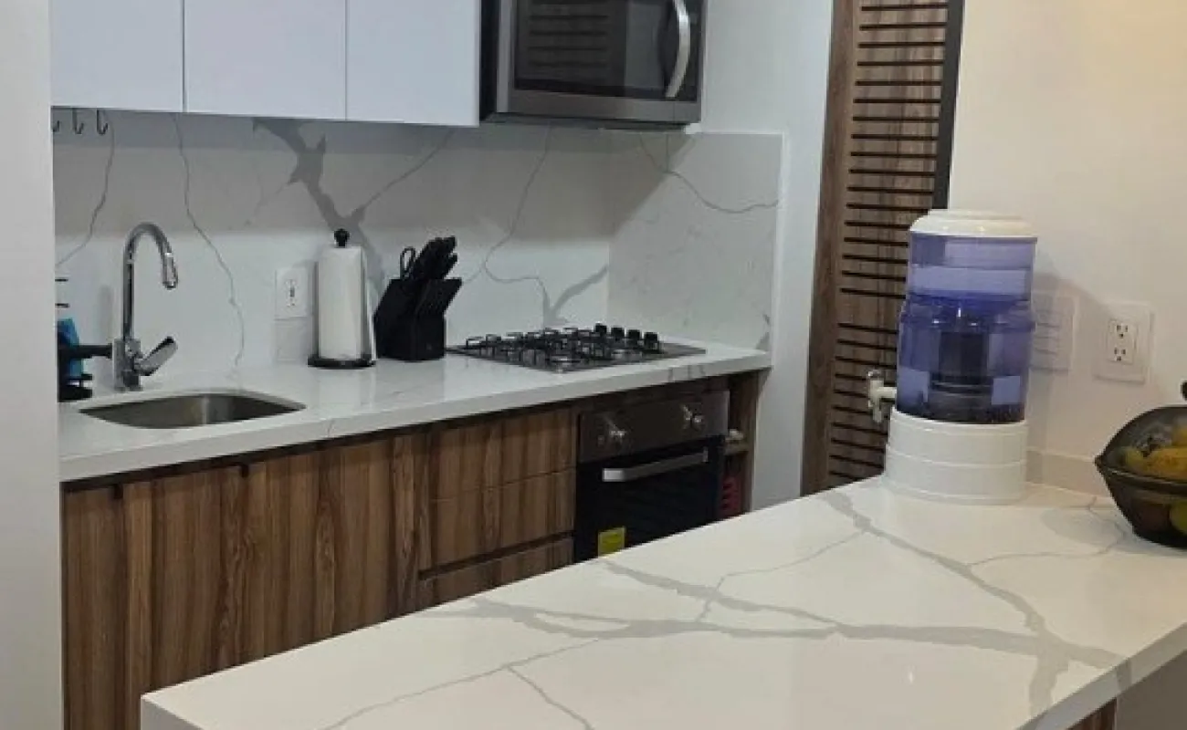 -cocina integral con barra (estufa, horno y microondas)