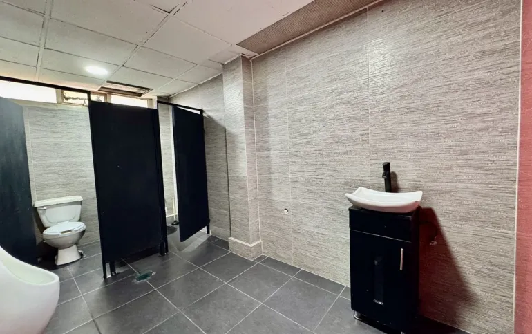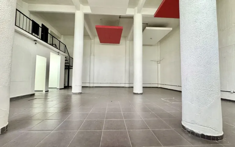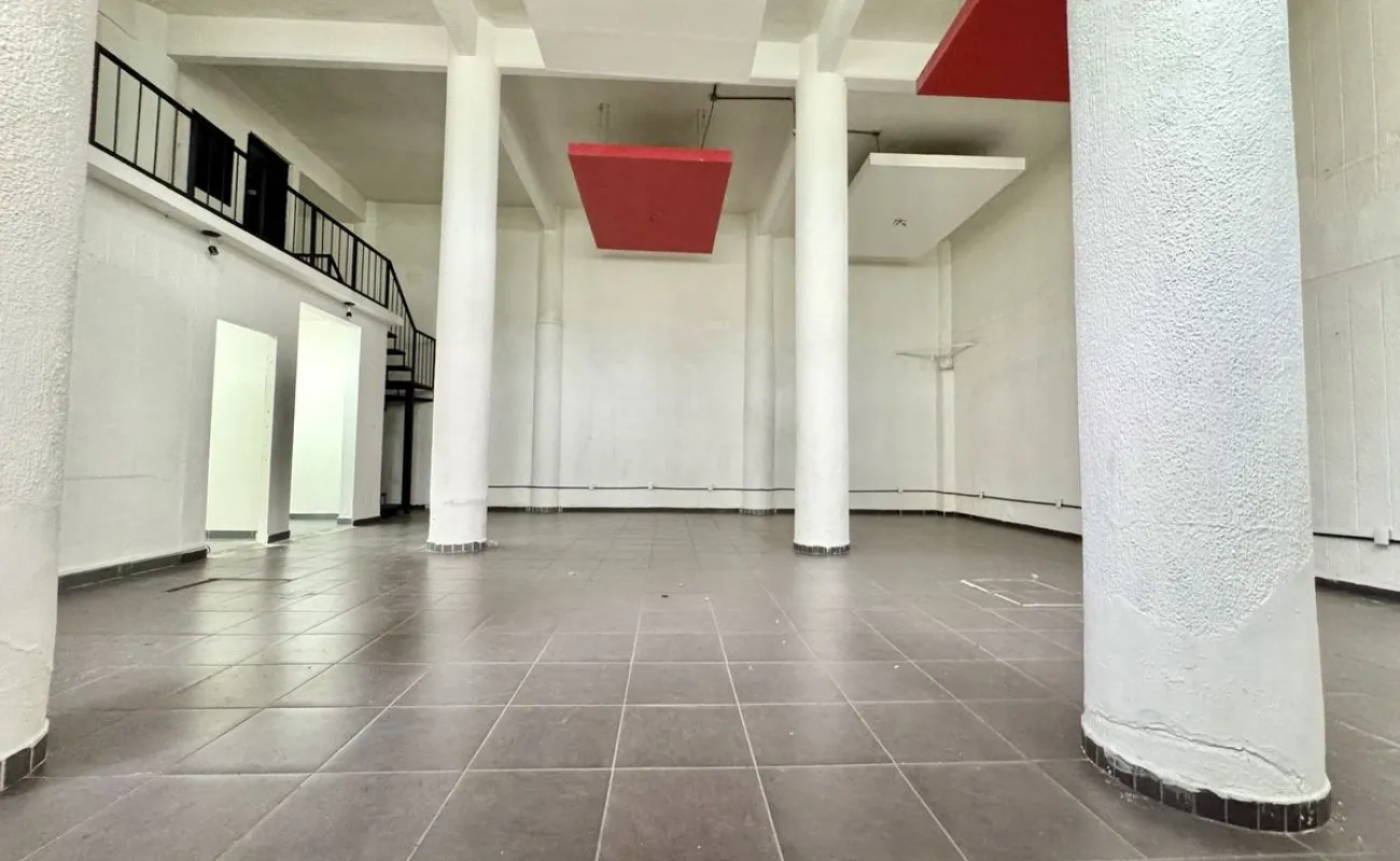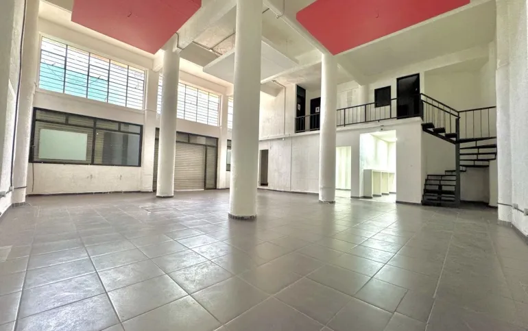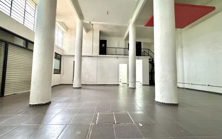 Con 216m2 a pie de calle y una altura de casi 6mts. En un segundo piso se localizan baños para hombres y mujeres y un privado que puede ser oficina o sala de juntas x su amplitud.