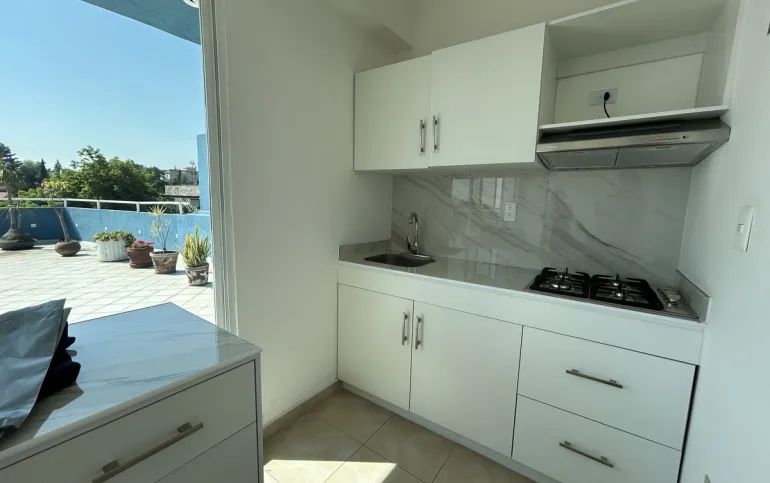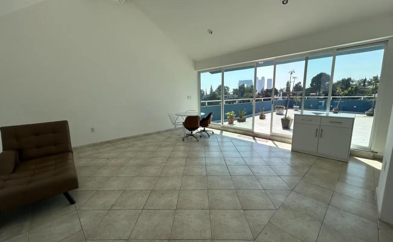 En el cuarto nivel, hay un departamento habitacional con baño completo y roof garden privado. Renta $28,000 mensuales.