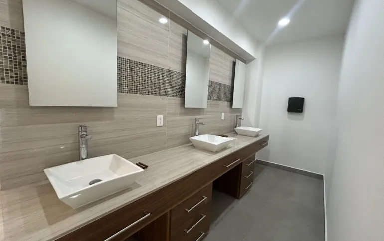 Cada nivel cuenta con baños y el edificio cuenta con 8 estacionamientos.