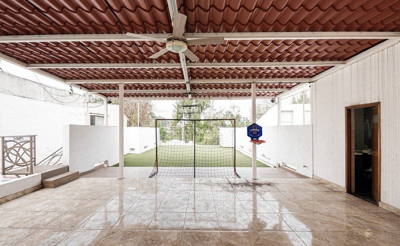 Cuenta con un sótano del mismo, tamaño de el área social y comedor, que es estupendo para Bodega, cuarto de lavado y cuarto de servicio. El portón es eléctrico, tiene circuito cerrado de seguridad y aire acondicionado con mini Split.