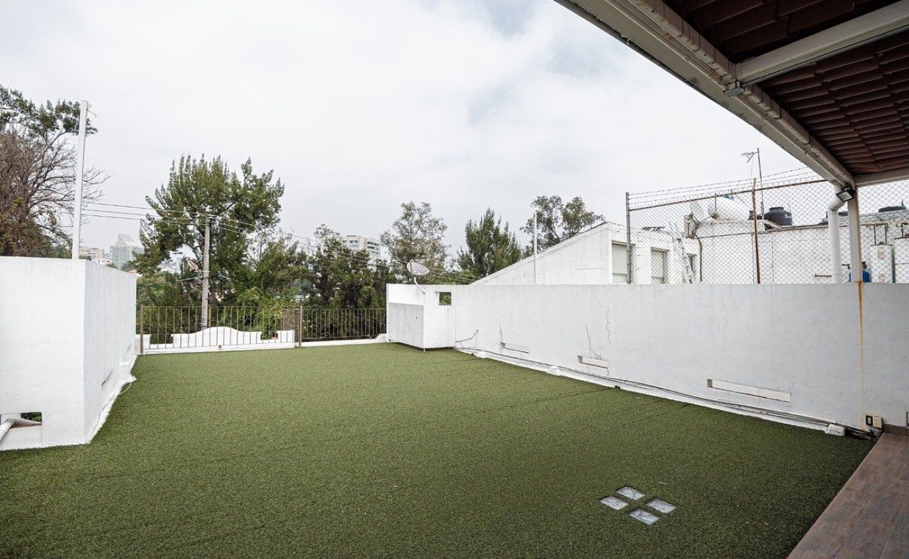 En el segundo piso cuentas con un Roof Garden, mitad techado y mitad con pasto sintético con baños y preciosas vistas hacia el bosque