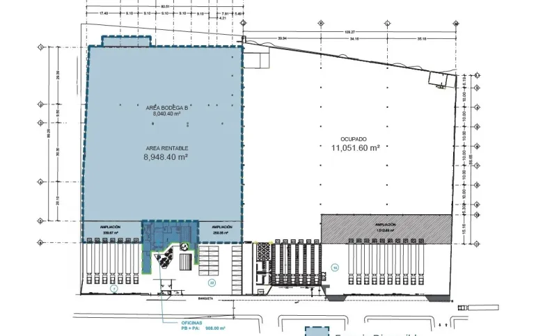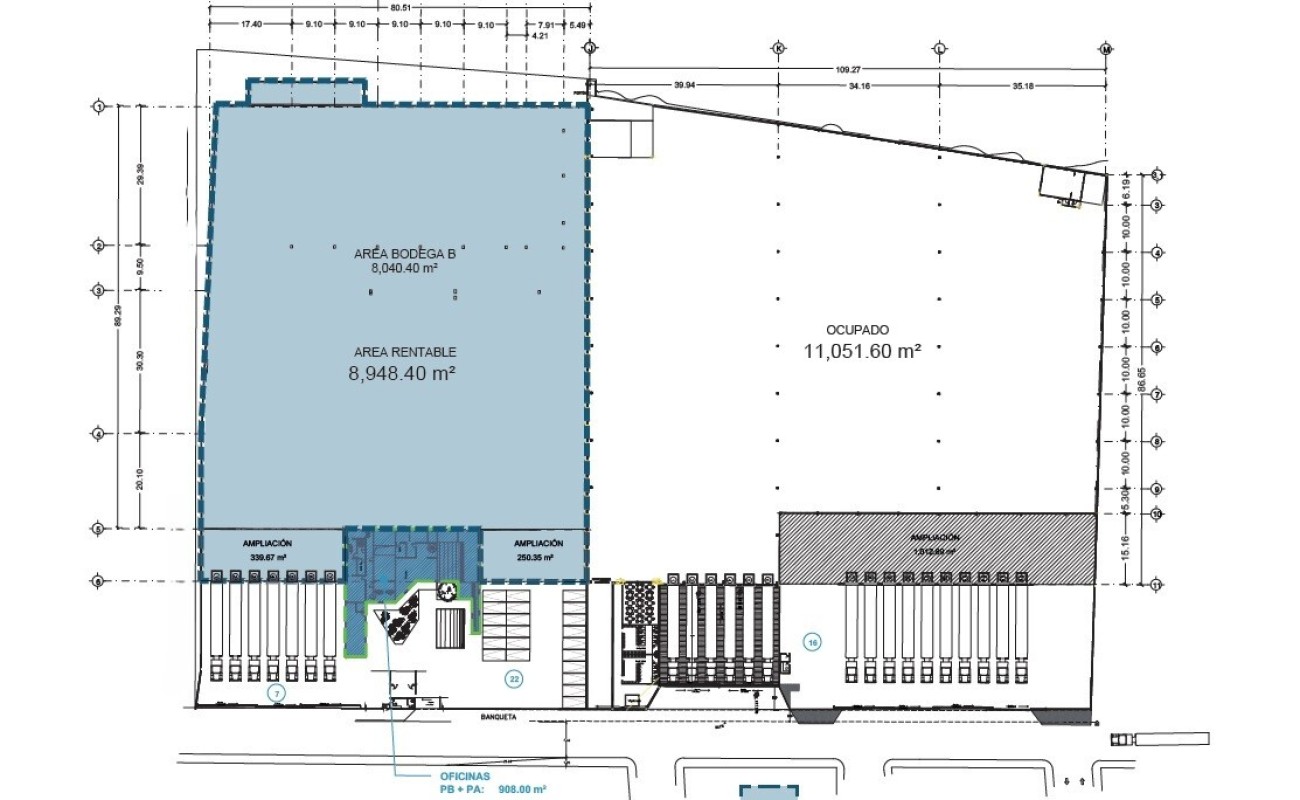 • Oficinas en Bodega B: 908 m² (Planta baja + Primer piso)