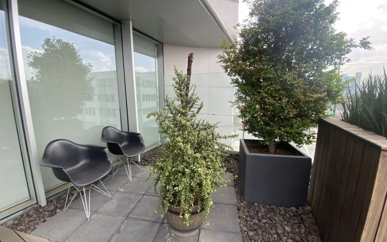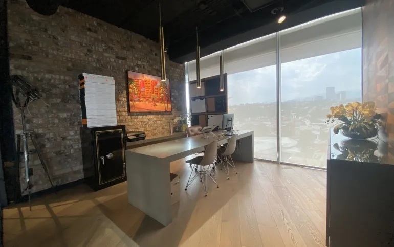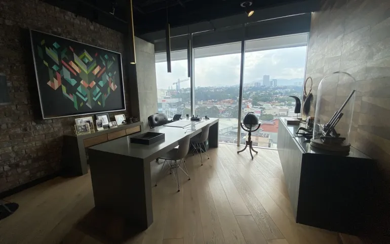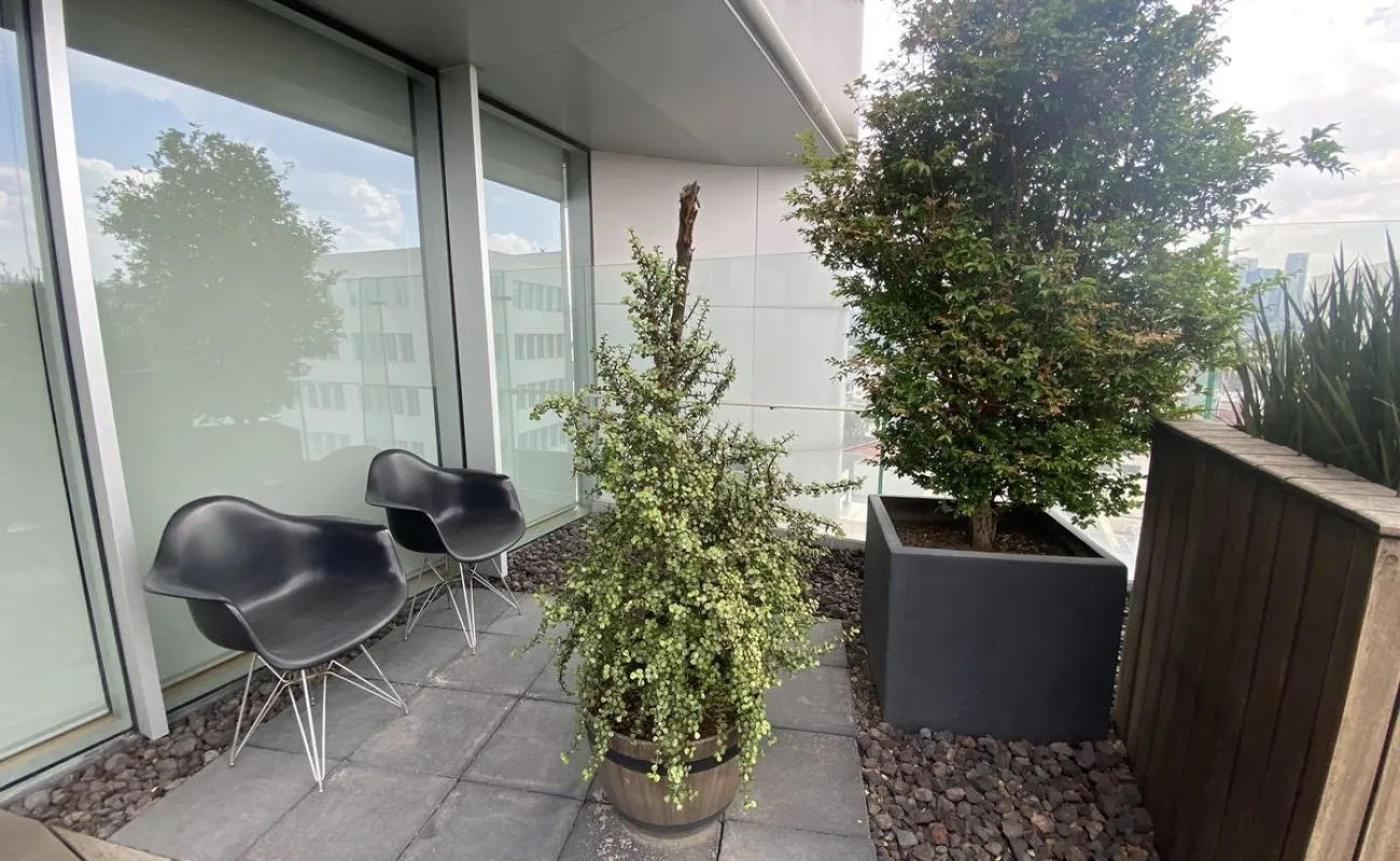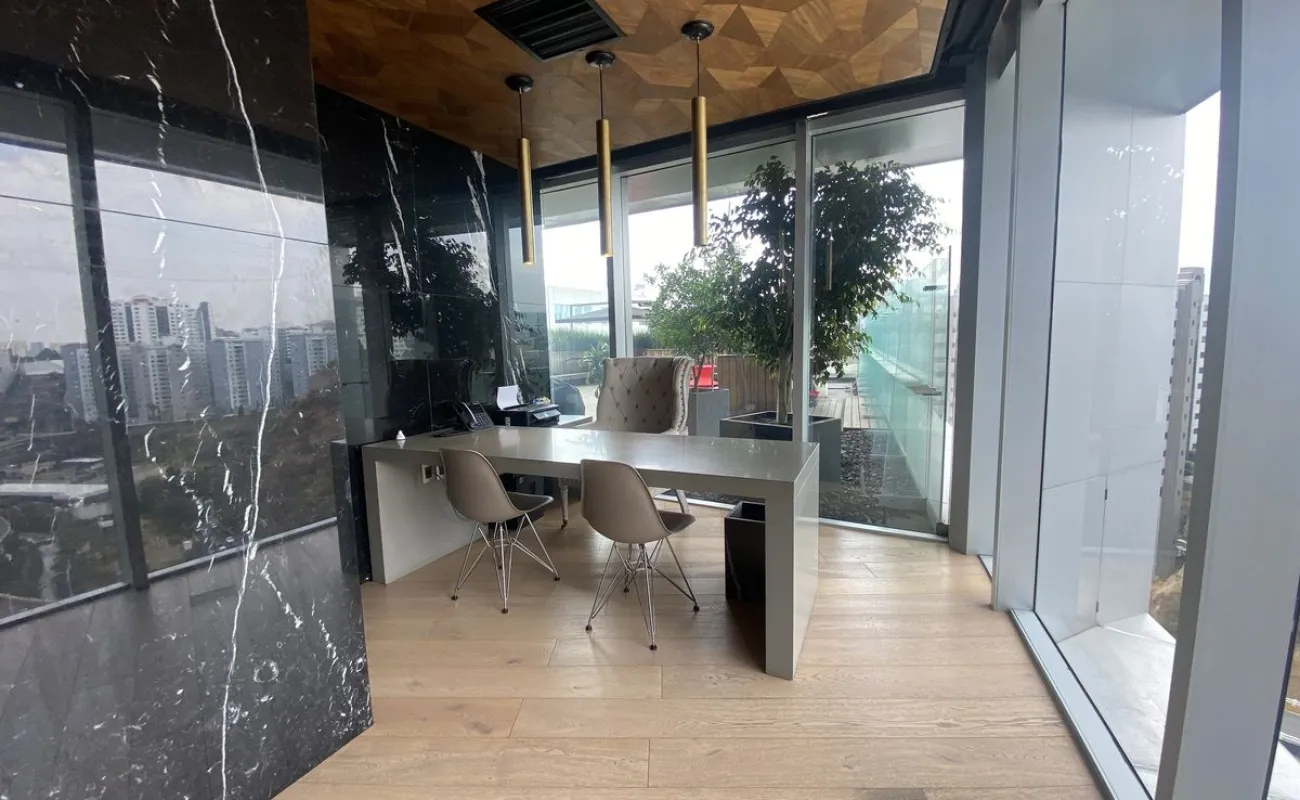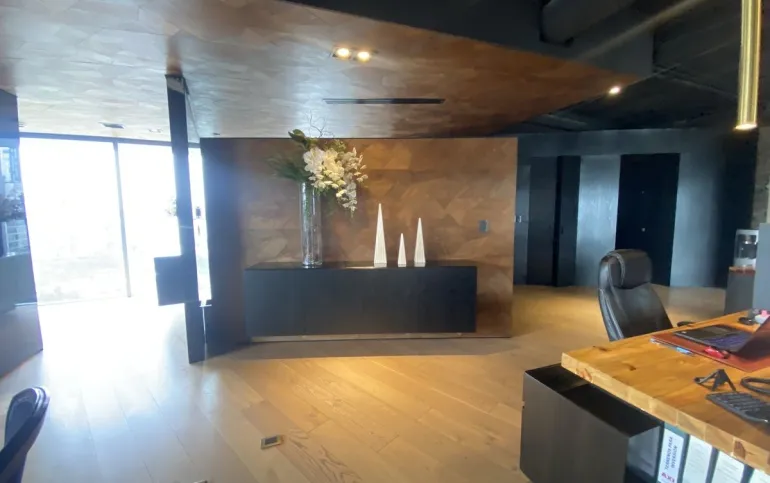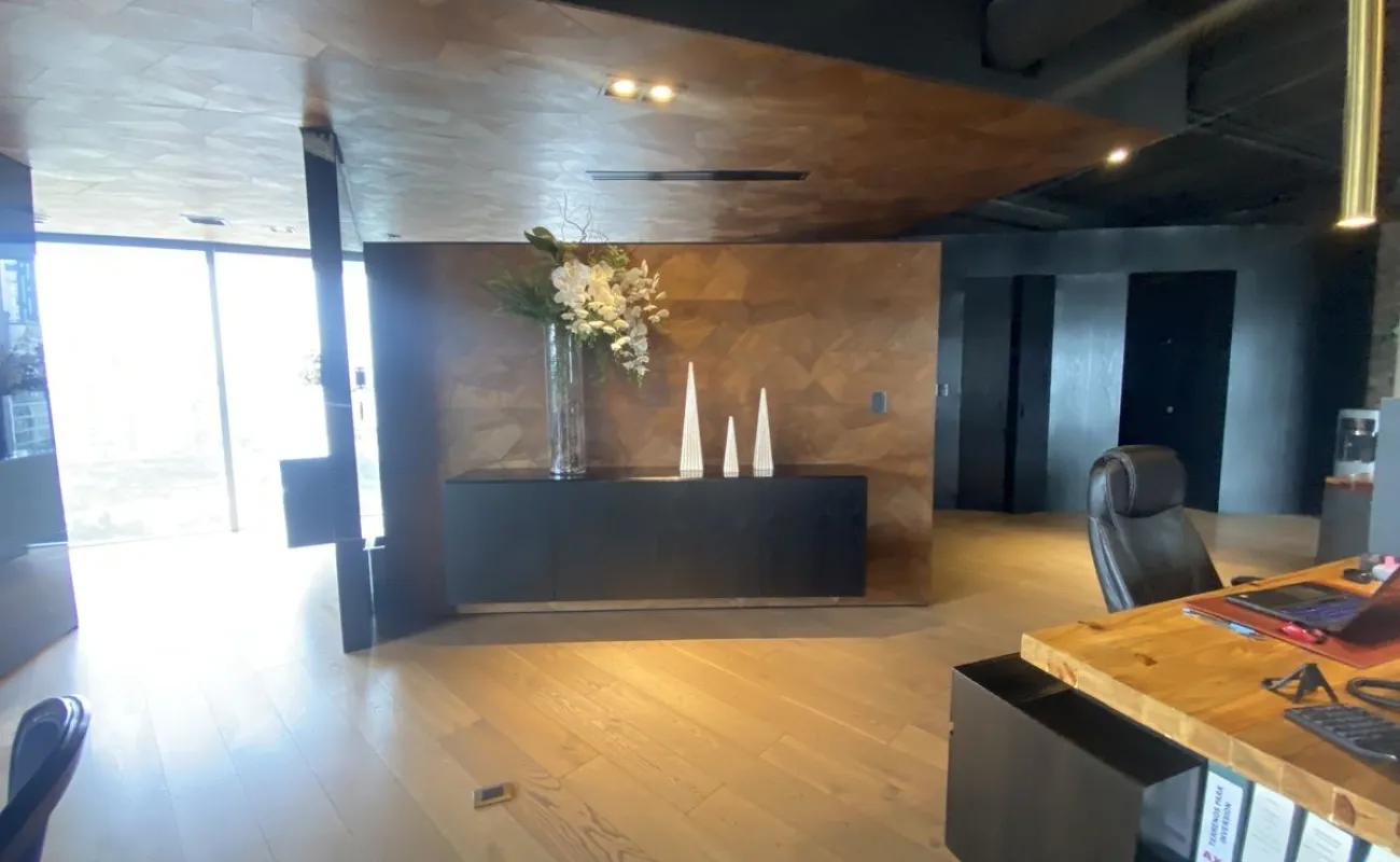 Hermosa Oficina completamente equipada Cuenta con área de recepción, área de trabajo para varios escritorios, sala de espera, estación de café, sala de juntas, dos privados. decorada con excelente gusto y acabados de primera. Tiene agradable Terraza de muy buen tamaño, para eventos El edificio cuenta con seguridad 24/7
