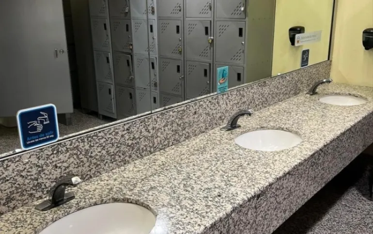 Baños para hombres y mujeres en cada piso