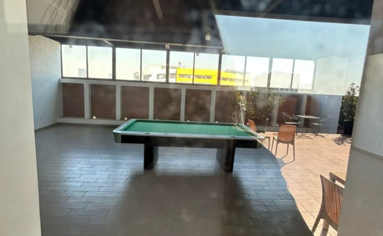 En el piso 9 se encuentran amenidades de uso común como terrazas con mesas, comedor, cancha de usos múltiples, área de juegos con pantalla y mesa de billar, así como una sala de trabajo y juntas, cuyo uso se solicita a la administración por horario o día.