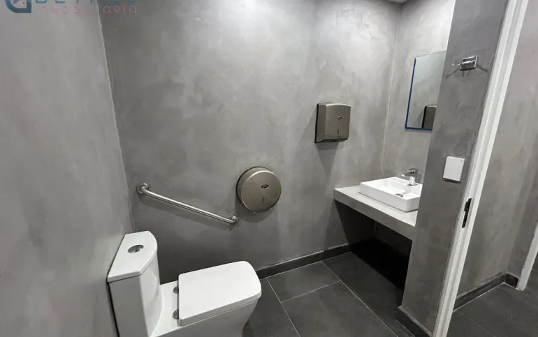 Sanitarios exclusivos del piso, divididos para hombres y mujeres, además de una tarja para limpieza en el área de servicio.