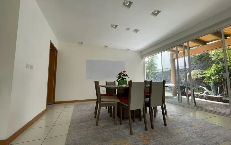 * Medio baño de visitas, sala, comedor con acceso a terraza con asador y amplio jardín