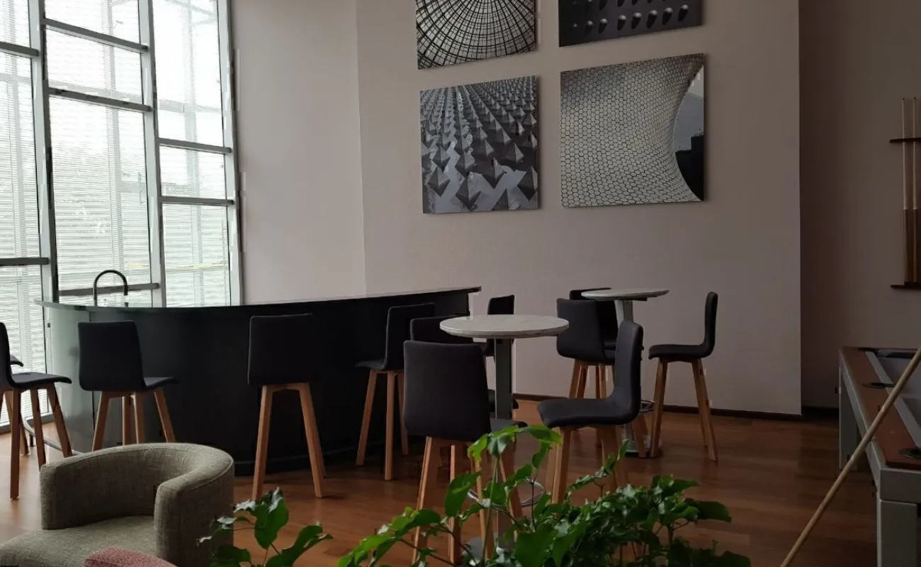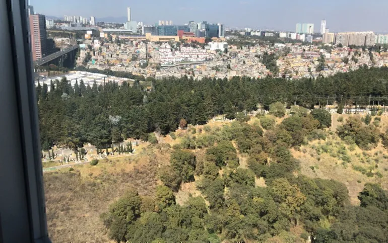 El departamento tiene una vista espectacular de la Ciudad de México, su temperatura es muy agradable durante todo el año, la distribución de los espacios es funcional. Además de que tiene una excelente iluminación y dos balcones, uno en el área social y otro en la recámara principal.