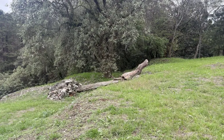 El terreno está ubicado sobre la calzada de las Águilas en una zona arbolada.