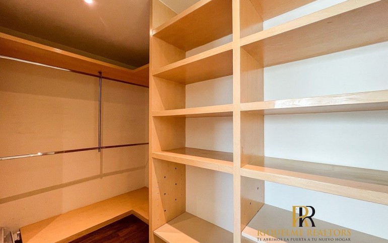3 recámaras, cada una con vestidor y baño (Recámara principal con vestidor de gran tamaño y baño con tina)