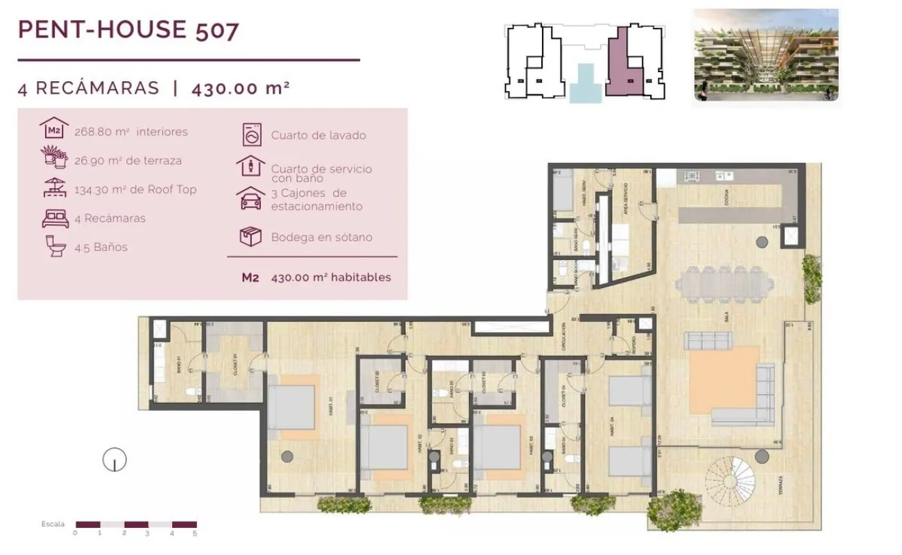 Pent-house en Venta en Puerto Cancún – 430 m² de Lujo y Exclusividad Vive en Puerto Cancún, la comunidad más exclusiva que combina un estilo de vida náutico con el lujo y confort que mereces. Rodeado de playas, marinas, campo de golf, áreas deportivas, boutiques, restaurantes, cines y entretenimiento, este desarrollo ofrece una ubicación estratégica única: conecta la Zona Hotelera, el Centro de Cancún y el Mar Caribe en un solo lugar. Características del Pent-house: • 4 recámaras. • 4.5 baños. • Cuarto de lavado. • Cuarto de servicio con baño. • 3 cajones de estacionamiento. • Bodega en sótano. • Interior: 268.80 m² • Terraza: 26.90 m² • Roof Top: 134.30 m² con jacuzzi, área de asador y barra, área lounge y un baño. • Total Habitable: 430 m² Amenidades del Desarrollo: • Gimnasio. • Alberca. • Business center. • Roof grill. • Sky terrace. • Sky jacuzzi. • Sala de entretenimiento. Amenidades en Puerto Cancún: • Marina y Club de Yates: a 150 m. • Centro Comercial: a 350 m. • Club de Playa: a 3 minutos. • Campo de Golf: a 3 minutos. Precio: $2,042,000 USD Un espacio cuidadosamente planeado para quienes buscan energía, estilo y exclusividad en cada rincón. ¡Agenda tu visita hoy mismo y haz realidad tu sueño de vivir en Puerto Cancún! Nota: Los precios publicados, disponibilidad del inmueble u otras condiciones podrán ser sujetos a cambio sin previo aviso. Toda la información y medidas provistas son aproximadas y se proporcionan con fines informativos, por lo que deberán ser confirmados en la documentación pertinente. La información corresponde a los últimos datos recabados y deberá confirmarse. Fotografías no vinculantes ni contractuales. EB-SC7315 IM