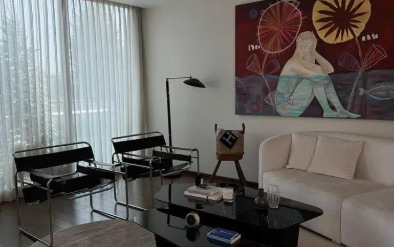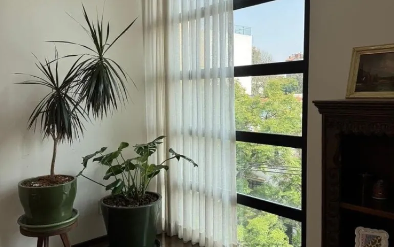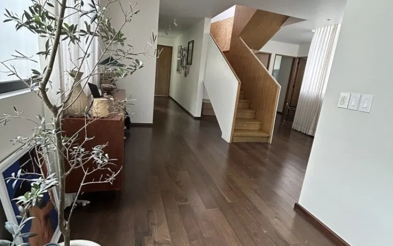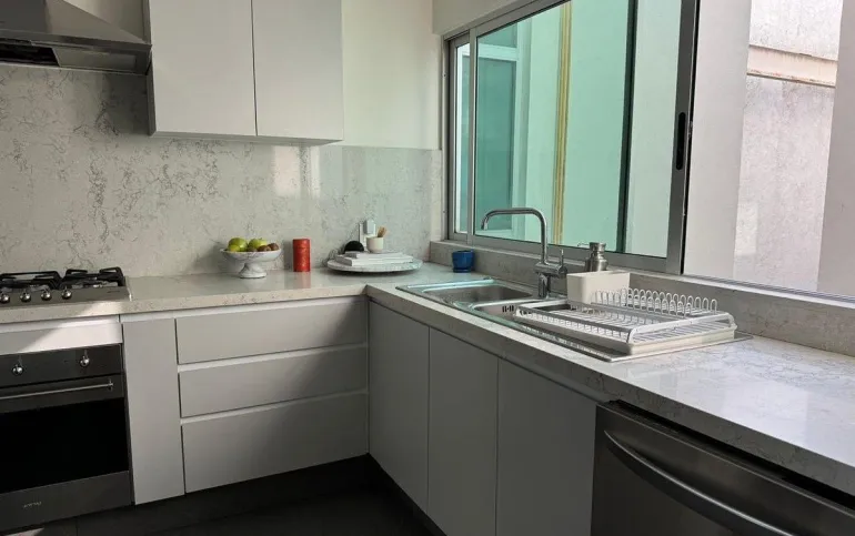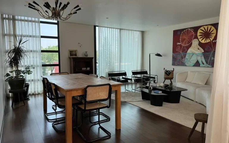 Está amueblado y equipado. Tiene 3 recámaras, 2.5 baños, 2 estacionamientos y rooftop privado con árboles frutales y family room.